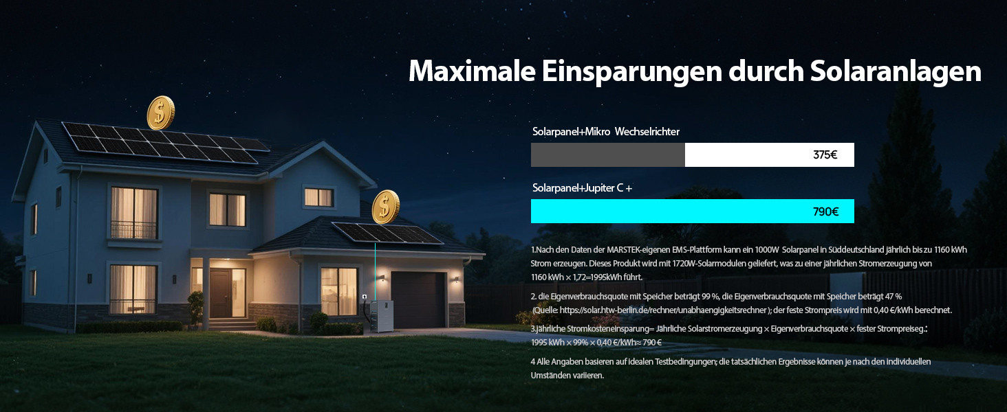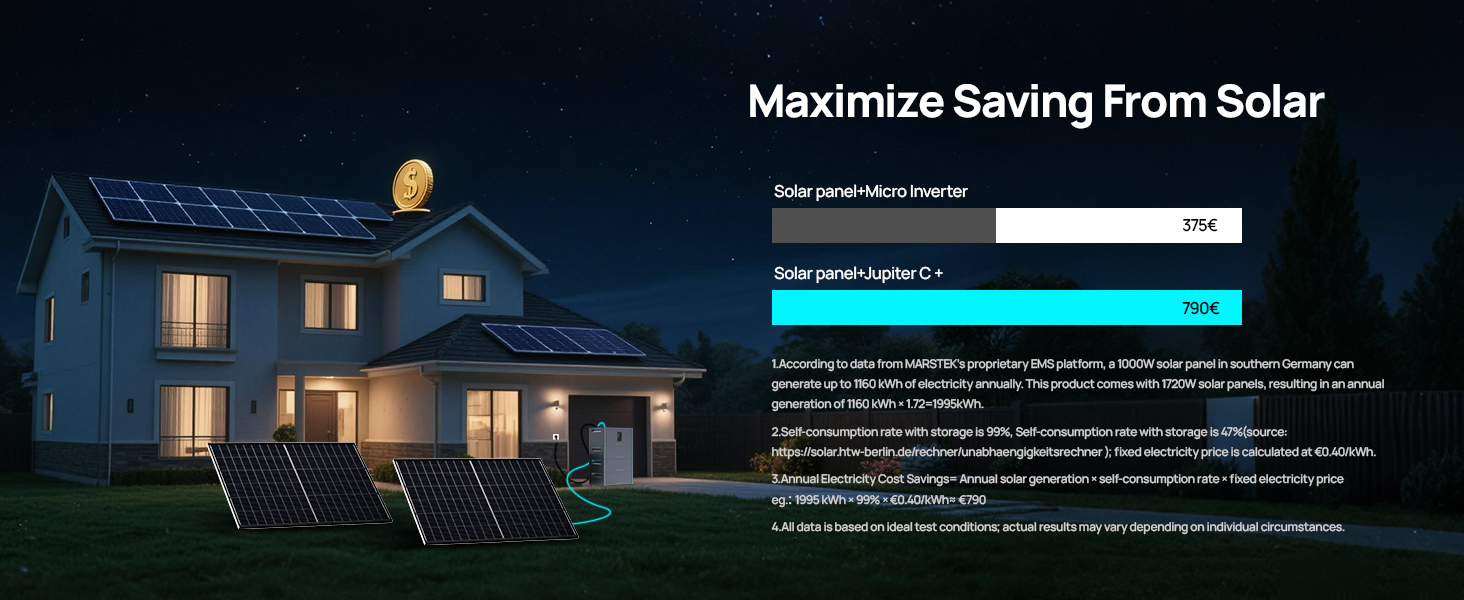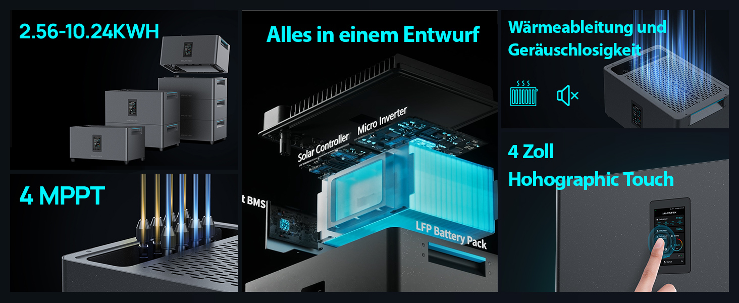 Das Balkon-Energiespeichersystem hat eine jährliche Stromerzeugung von 1995 kWh, ein 4-Wege-MPPT-Design und einen Umwandlungswirkungsgrad von bis zu 99,8%.