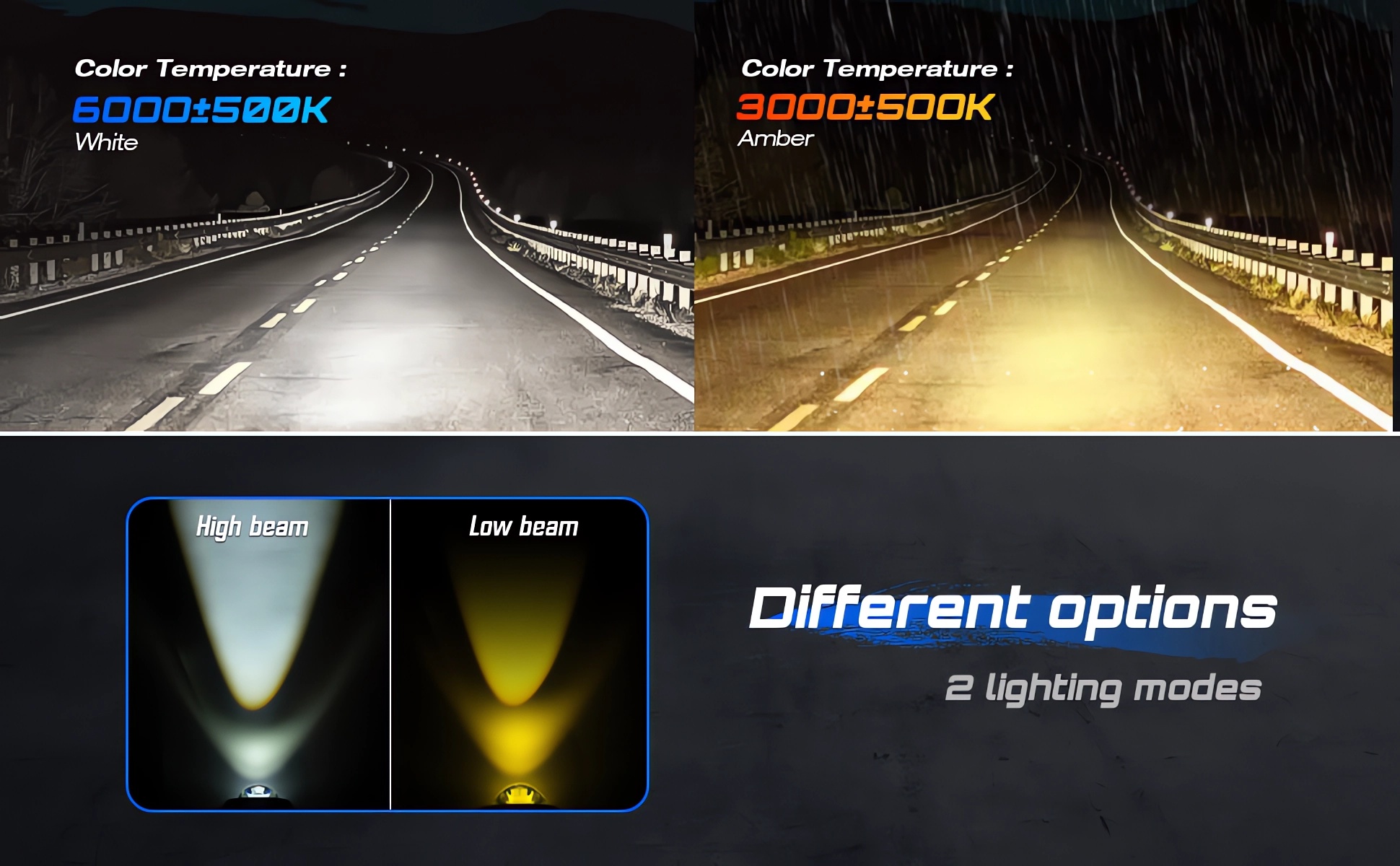 Color Temperature: 3000±500K Amber Light; 6000±500K White Light
