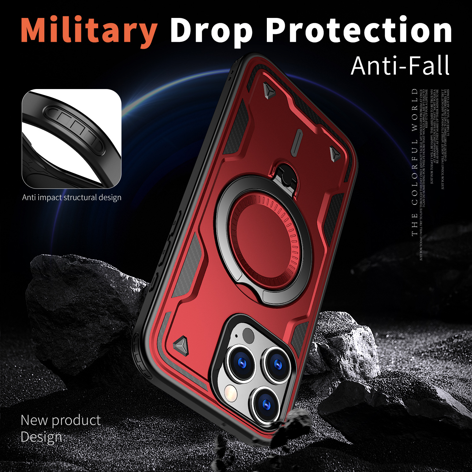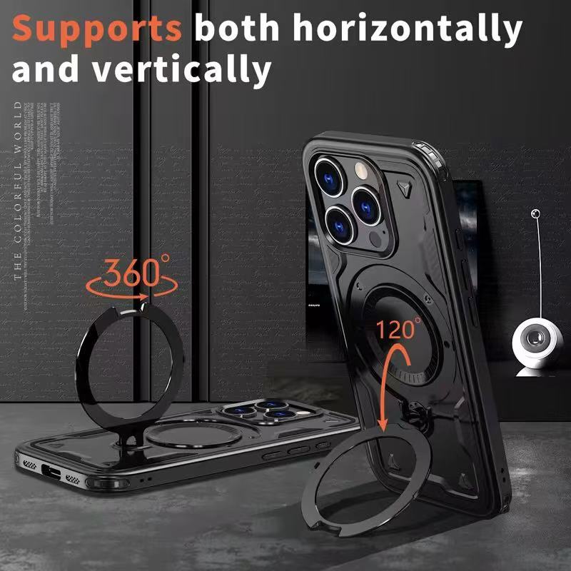 Experience the perfect blend of style, protection, and functionality with this 360° Rotation MagSafe-compatible iPhone case. Designed for modern users, it features a rotating ring kickstand and a built-in magnetic back that supports fast and secure MagSafe charging. Whether you're streaming, FaceTiming, or on the go, this case keeps up with your lifestyle.