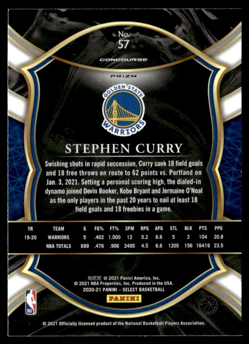 2020-21 Panini Select Blue Silver Stephen Curry #57