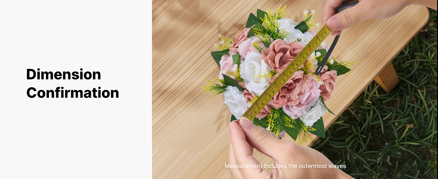 A 1: Our flower bouquets fit most wedding stands, arches and centerpieces. Please refer to the size chart before purchasing. If you are using a custom frame, please make sure the base size matches the opening at the bottom of the bouquet.