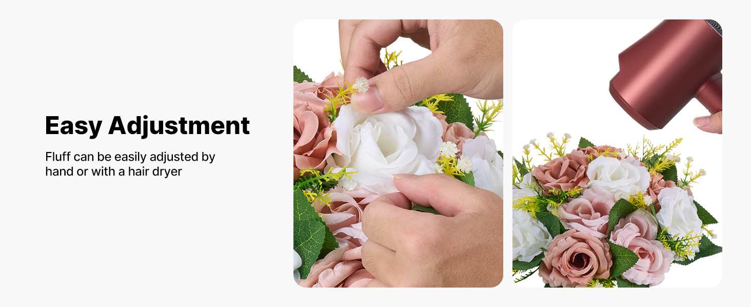 A2: Yes, each flower ball is fully pre-assembled for your convenience. Due to packaging, slight compression may occur. Simply use a hairdryer on low heat for a few seconds and gently spread the petals by hand to restore its shape.