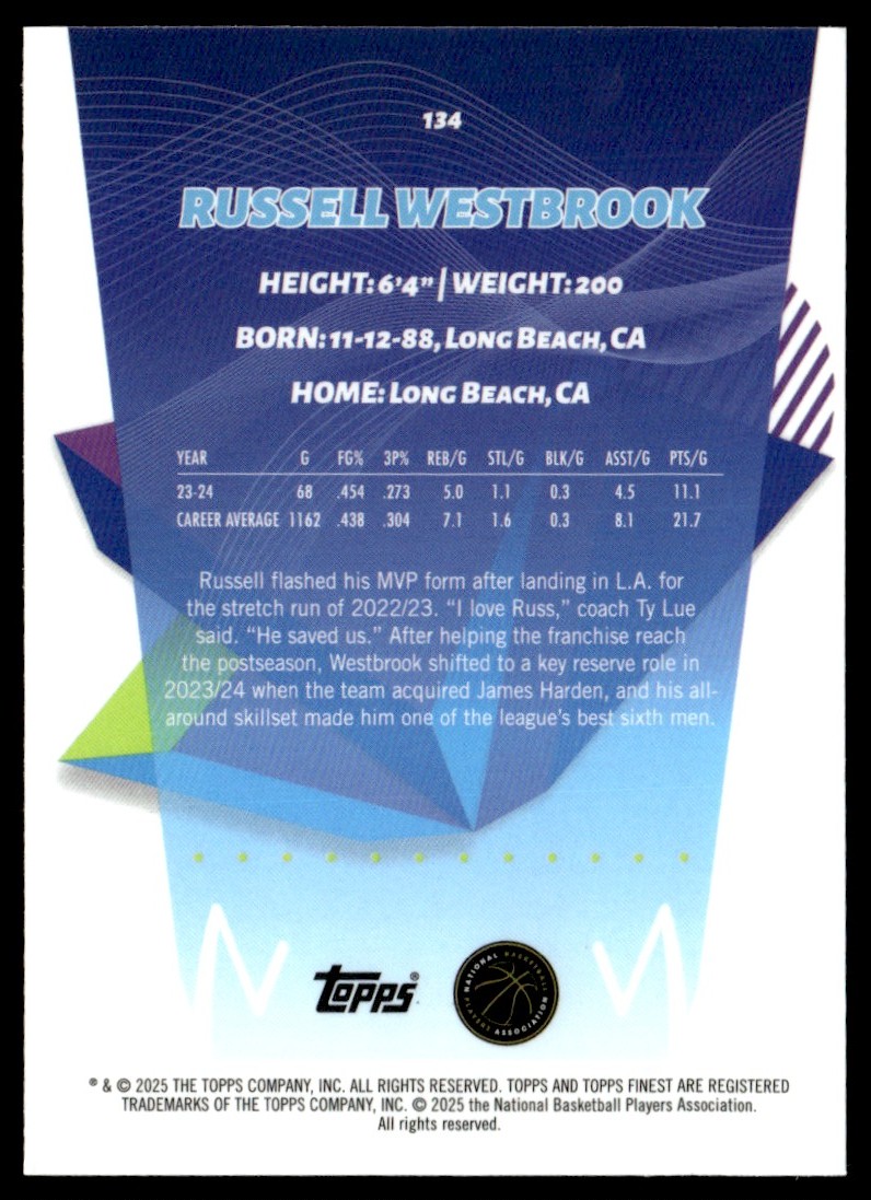 2024-25 Topps Finest Orange XFractor Russell Westbrook 167/200 #134