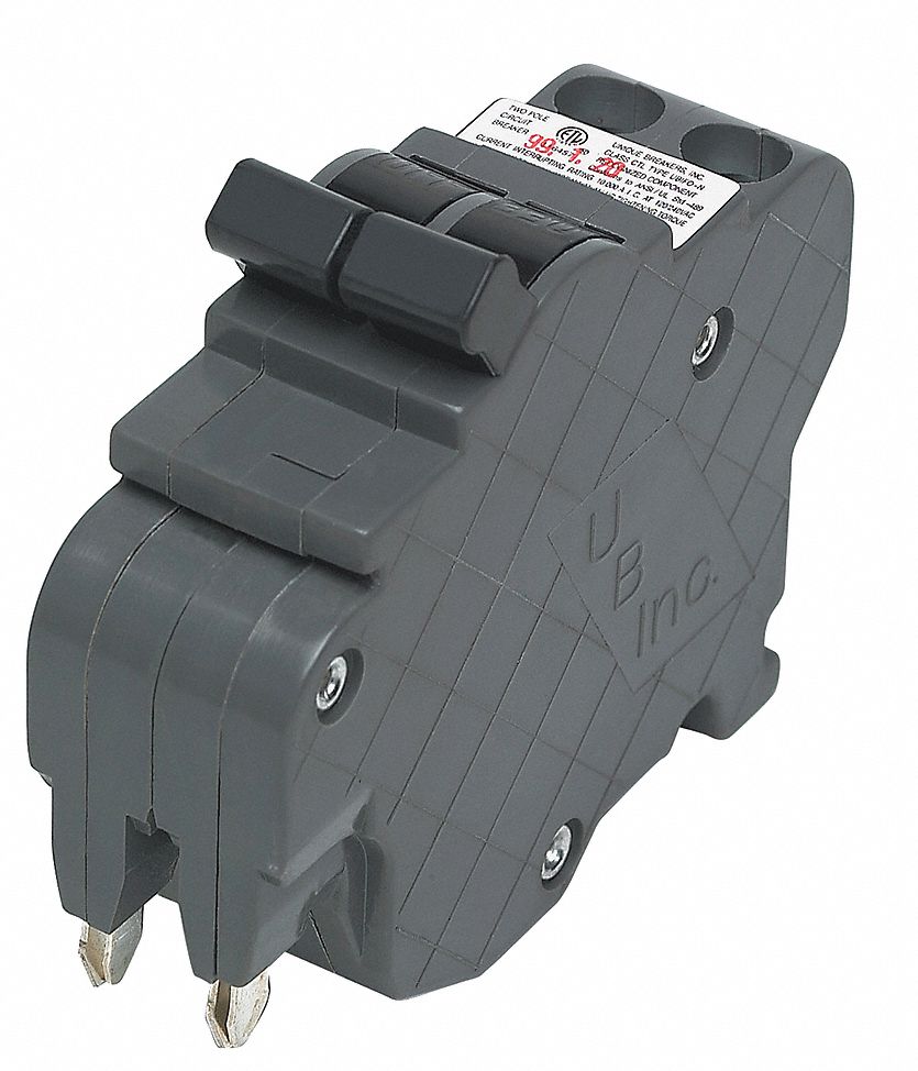 Miniature Circuit Breaker, Amps 30 A, AC Voltage Rating 120/240V AC, Circuit Breaker Type Standard, Number of Poles 2, DC Voltage Rating Not Rated, Circuit Breaker Actuator Toggle, Circuit Breaker Mounting Style Plug In, Compatible Panelboard/Load Center Series X125-0816C, Phase Single, Series UBIF, Max. AIR Rating 10kA at 120/240V AC, For Use With Federal Pacific Load Centers, Terminal Connection Lug, Frame Size 70A/HACR, Length 3.36 in, Width 1 in, Depth 2.55 in These miniature circuit breakers plug or bolt into place in Federal Pacific load centers. They interrupt currents when faults are detected in the circuit. They connect to the power supply through bus bars, which eliminates the need to pigtail wires and helps organize the load center.
