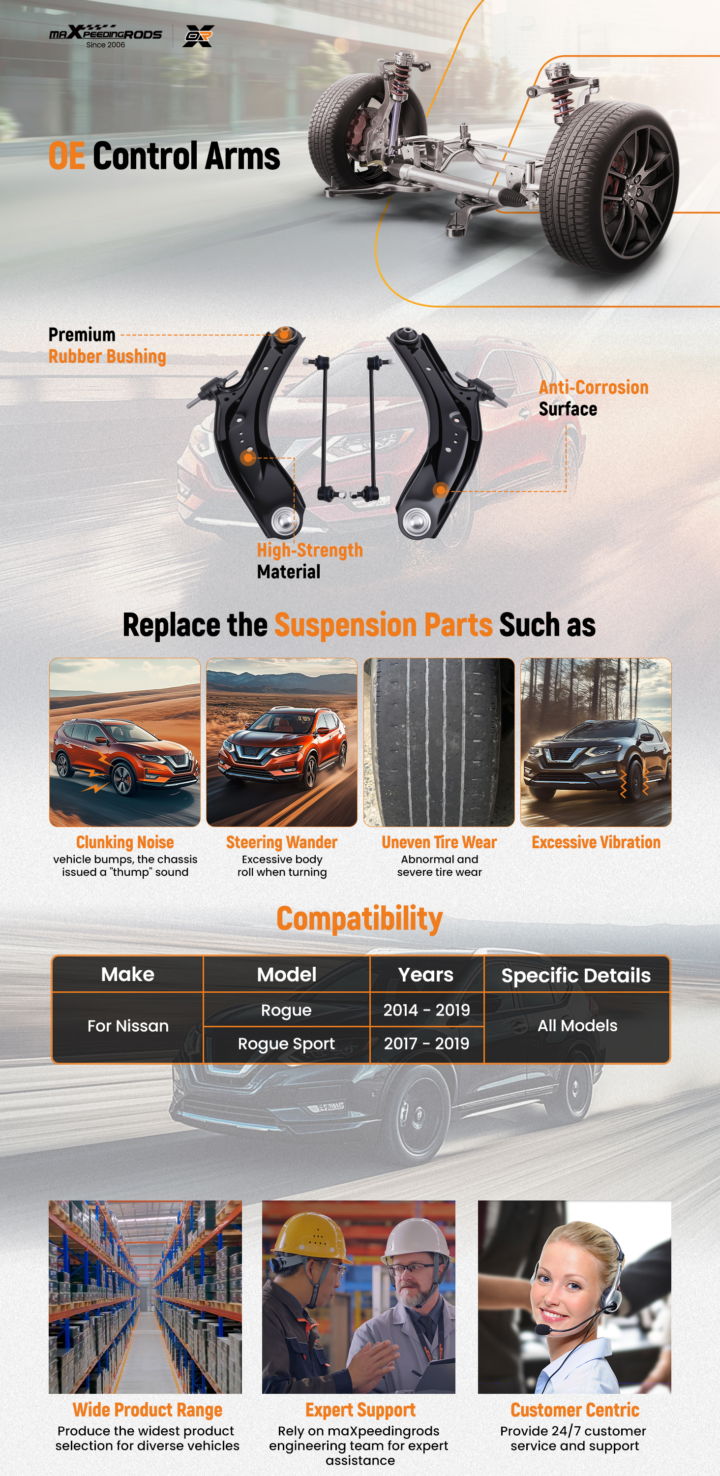 Front Lower Control Arms w/ Ball Joint Sway Bar Link for 2014-2019 Nissan Rogue