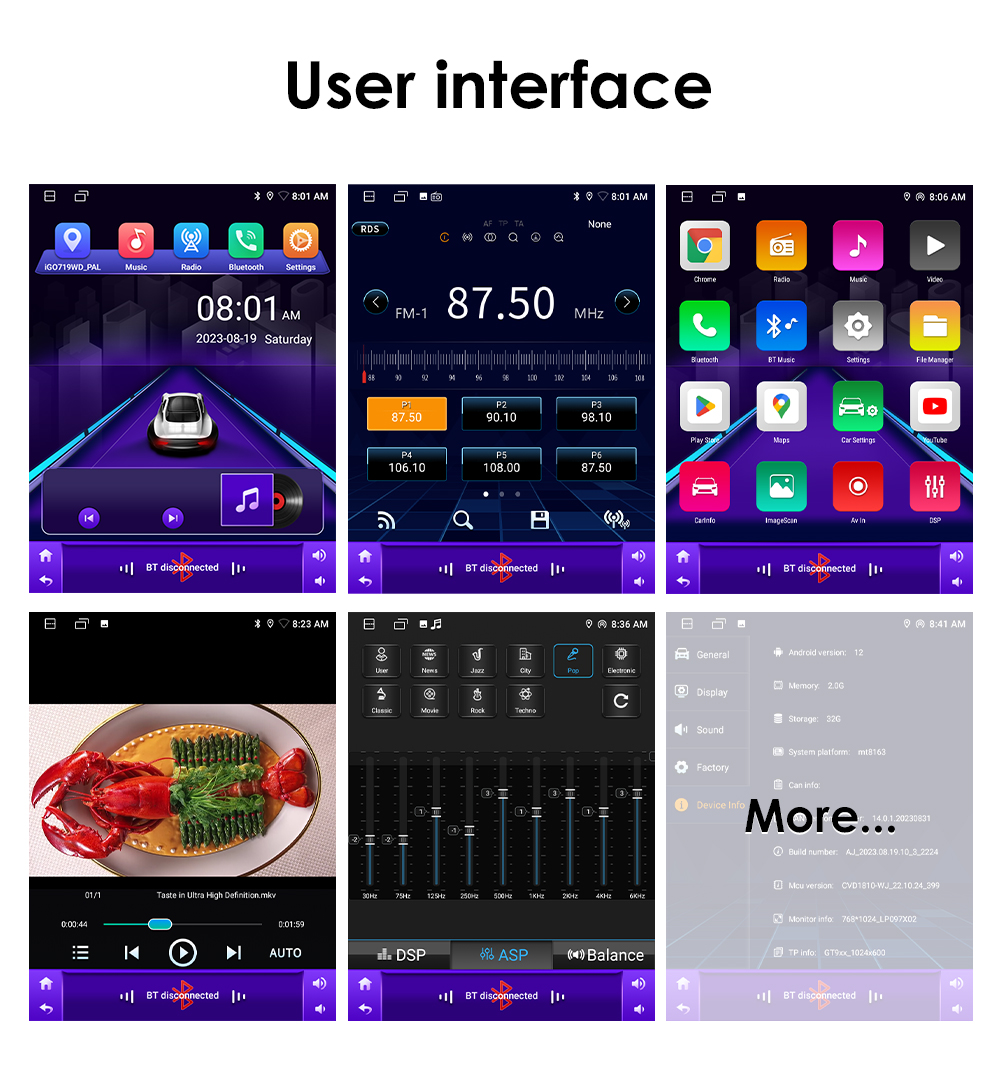 - Driving safety: Watching Video, Reversing X-mirror/Volume, Reversing Trajectory/radar Display, Rear view ruler