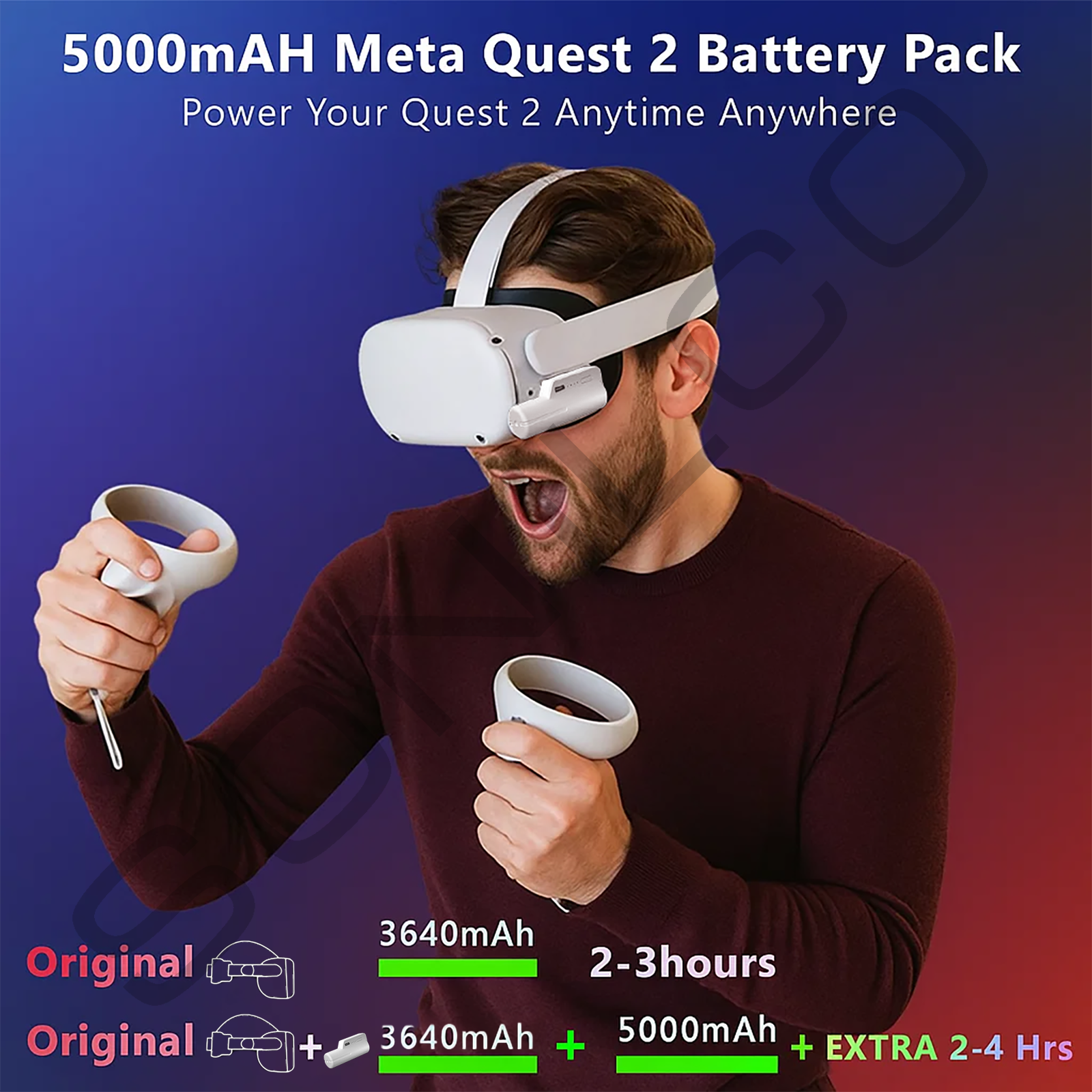 Extend your VR playtime with the Sonilco 5000 mAh Type-C Power Bank, designed specifically for Meta Quest 2/3/3s. Lightweight, portable, and powerful, this battery pack provides up to 4 extra hours of gaming while offering safe and reliable fast charging.