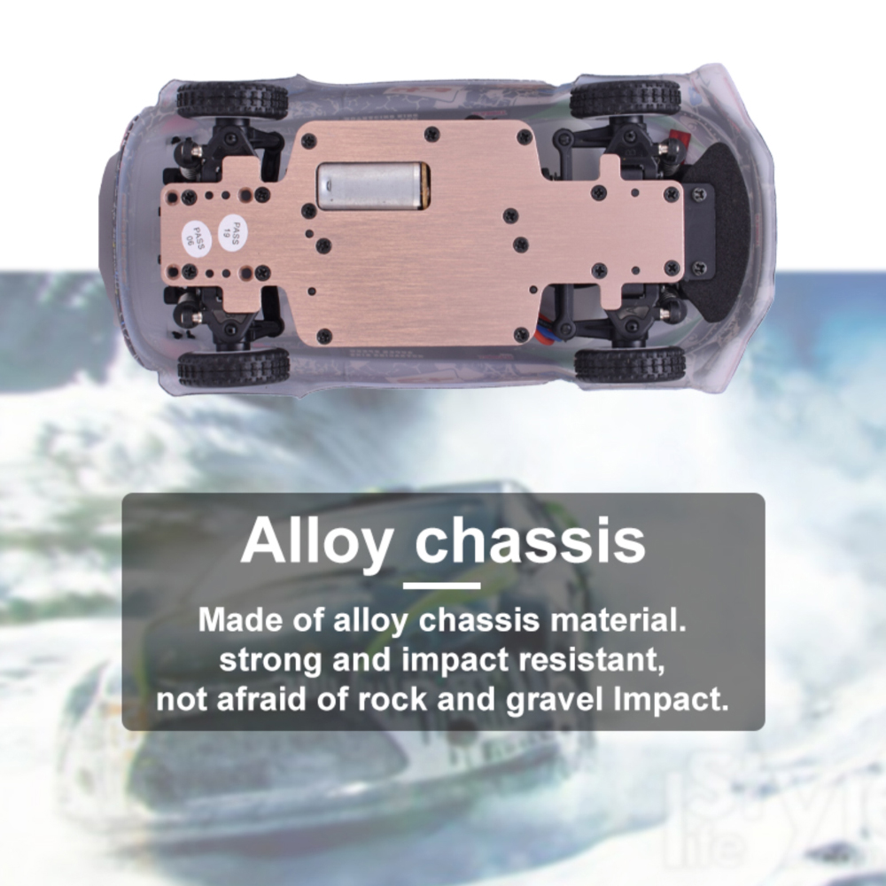 5.Alloy chassis.Made of alloy chassis material.strong and impact resistant,not afraid of rock and gravel Impact.
