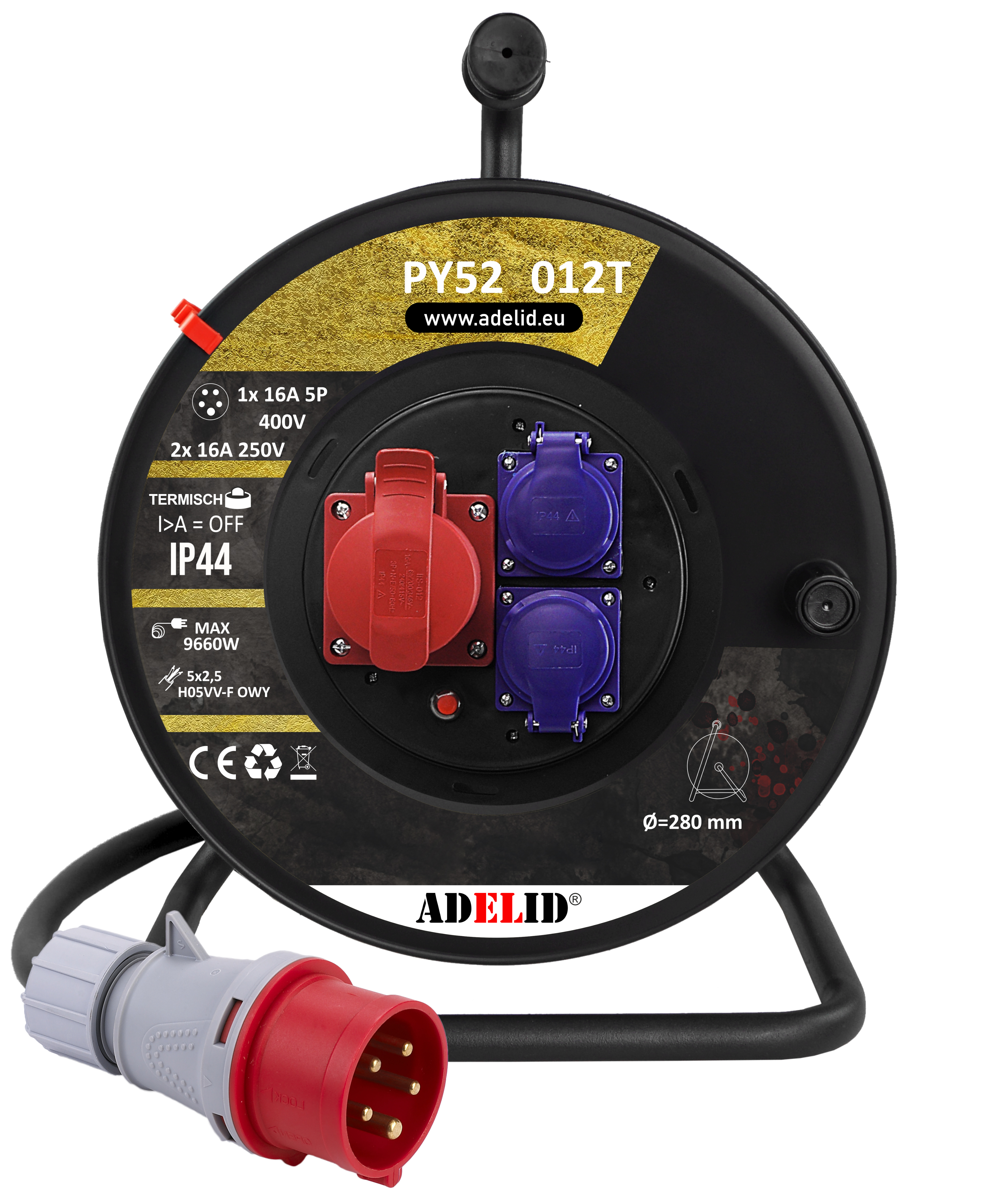 Trommel-Verlängerungskabel mit CEE 5P 16A Dose und 2 Steckdosen 16A 2P+PE 230V, H05VV-F 5*2,5mm².