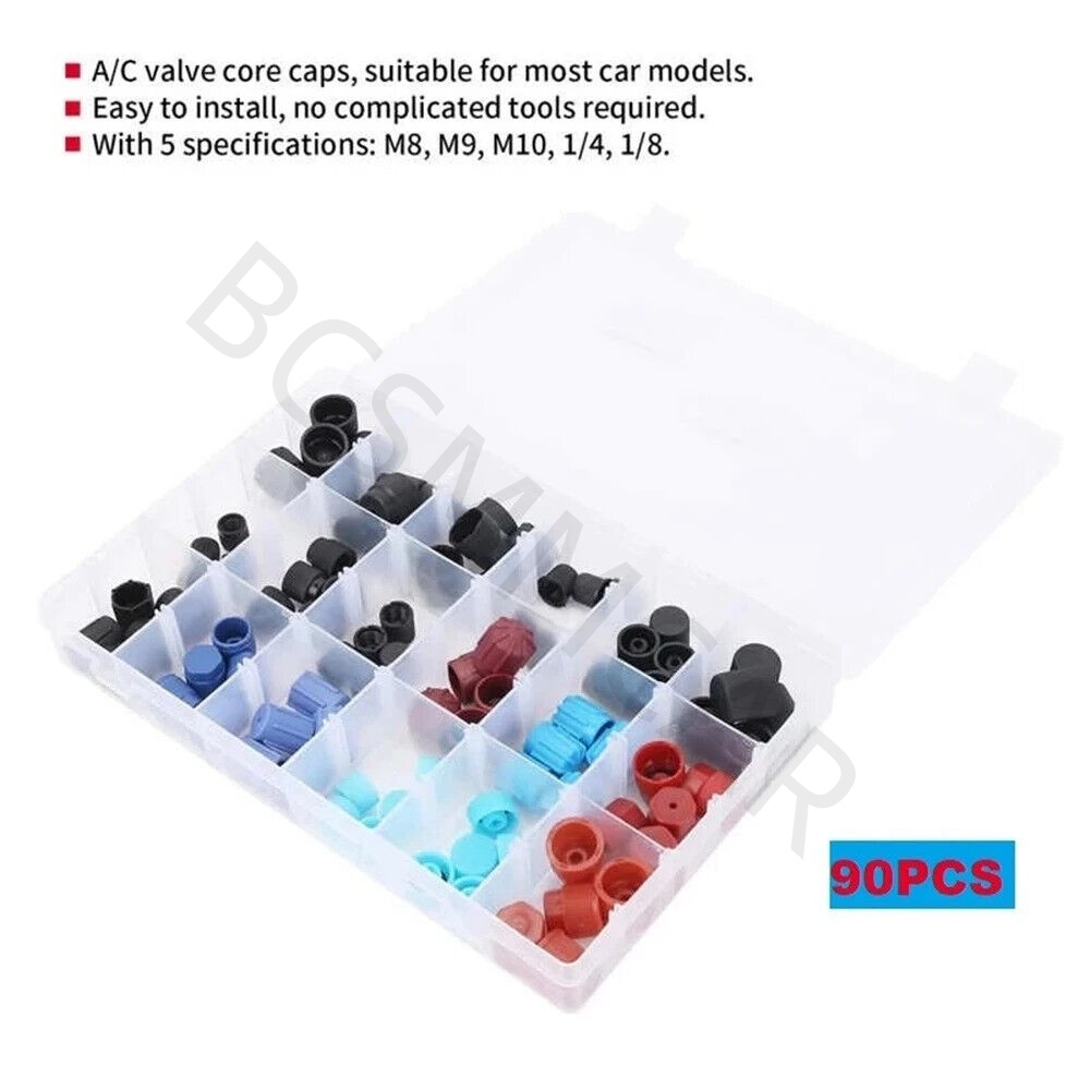 90Pcs Car Auto A/C R134a R12 High Low Side AC System Valve Core Dust Caps Set Air Seal Replacement Car Air Conditioning Repair