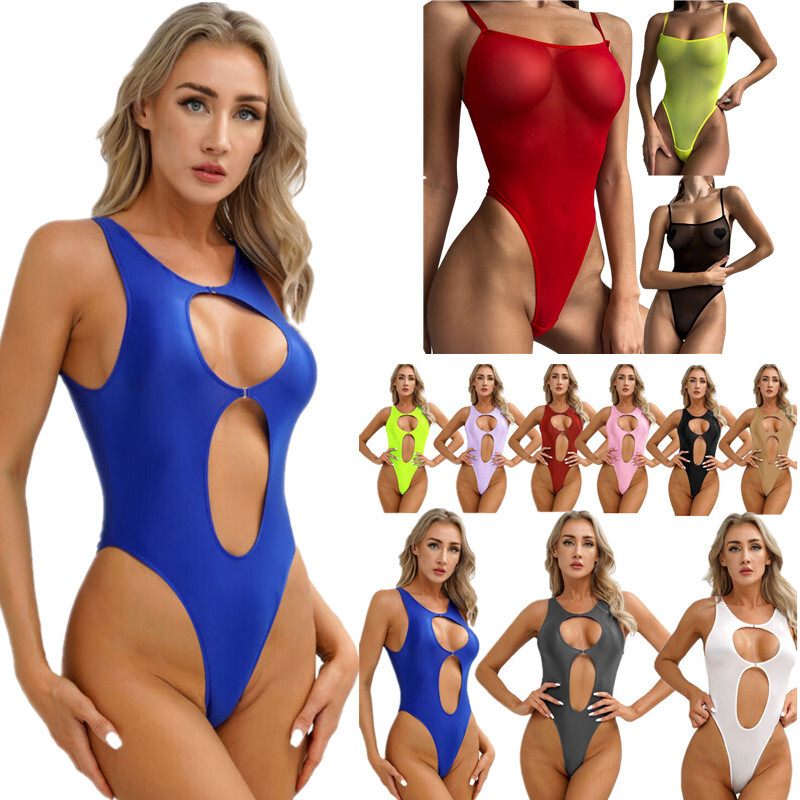 Womens See-through Mesh Crotchless Bodysuit Hollow Out Halter Backless Leotard Lingerie Nightwear.
