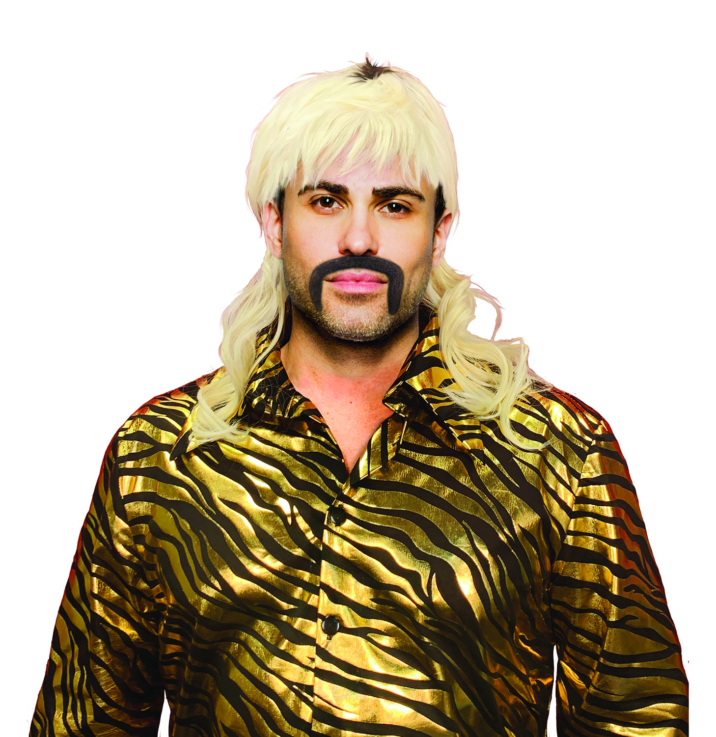Be the life of the party with this hilariously fun Tiger Trainer Costume Wig set, including a blonde wig and peel-and-stick false mustache. Whether you're dressing up for a Halloween celebration or a costume party, this quality cosplay costume wig set will help you complete your look. Made of 100% synthetic fiber, the blonde mullet wig and false mustache are one size and designed to fit most teens and adults.