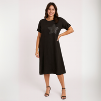 Shine bright in effortless style with our Black Pure Cotton Dress featuring a Silver Sequin Star. Crafted from breathable 100% cotton, this plus-size dress combines everyday comfort with a touch of sparkle.