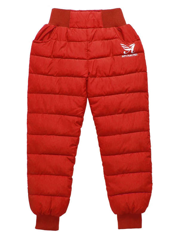 Unisex children’s padded pants have elasticated ribbed waist and legs to prevent wind from blowing in and reduce heat loss.