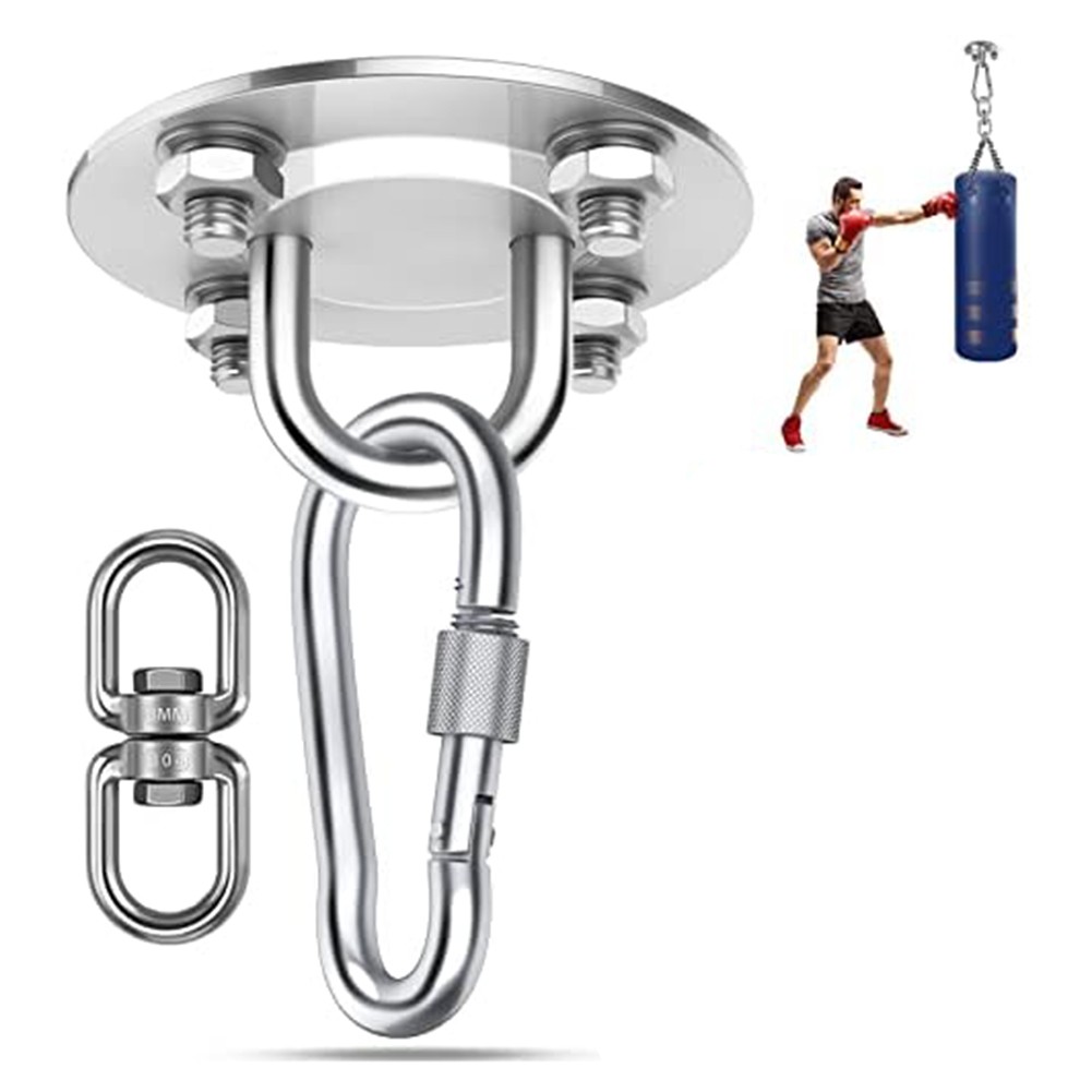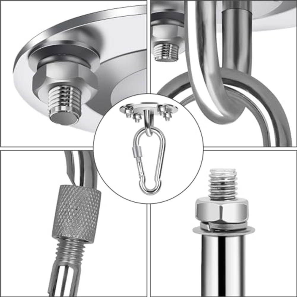 *Complete set pour sans souci installation : l'ensemble de suspension de plafond comprend tous les composants nécessaires tels la plaque, les ancrages robustes, les tubes d'expansion, le mousqueton et le joint pivotant à 360 °. Aucun accessoire supplémentaire n'est nécessaire, pour ce qui rend l'installation sans tracas.