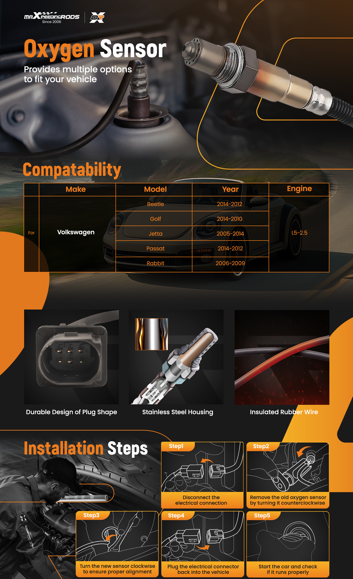 【Easy Installation】The oxygen sensor threads have been pre-coated with anti-seize lubricant. Install directly to save your installation time. Equipped with cover protection to prevent lubricant from being affected during transportation.