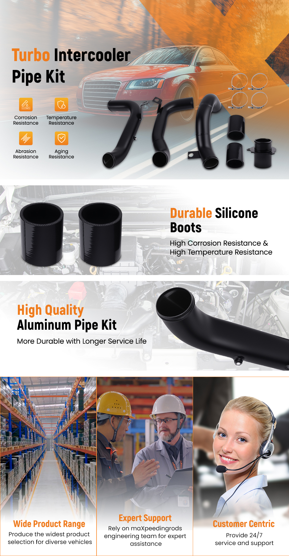 Intercooler Pipe Kit turbocharged models is great way to improve throttle response, reduce turbo lag and maximize power potential.