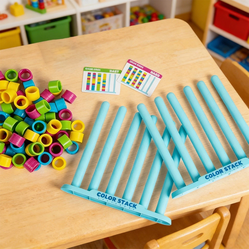🧩【Strategische Ringstapel-Herausforderung】 Dieses Farbanpassungs-Puzzle verbindet Sortieren, Stapeln und Mustererkennung zu einer spannenden Tischaktivität. Jede Runde bietet eine neue Konfiguration, die es zu lösen gilt.