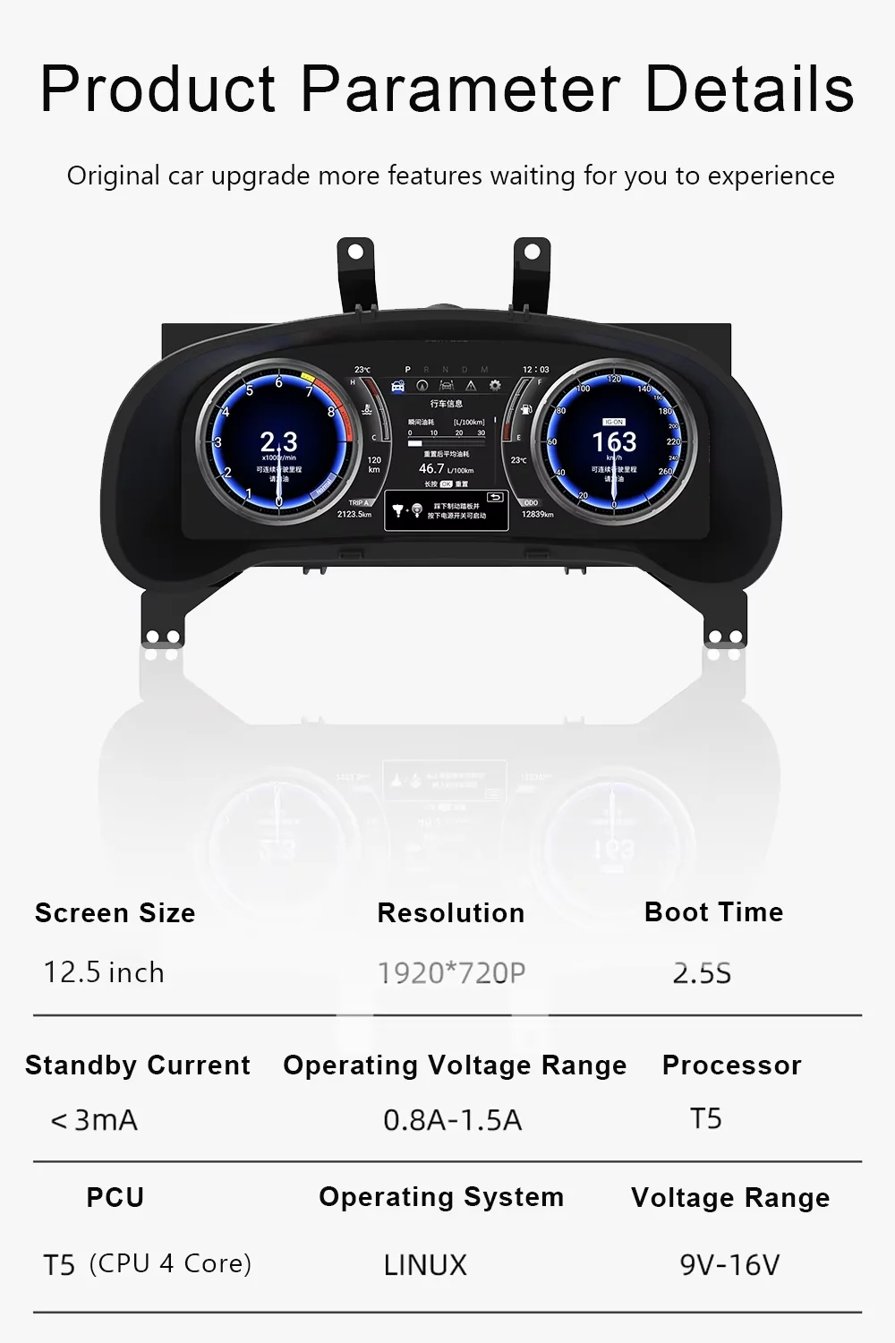 4.Supports original car functions such as air conditioning settings ,dor information ,the TPMS ,Speed information ,ect .(CANBUS required, more original car functions are related to the original car)