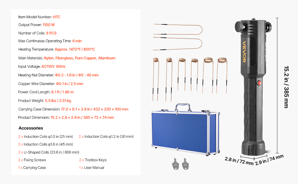 Complete Kit: The magnetic induction heater kit offers 4 specifications with a total of 8 heating coils. It is suitable for easily handling complex and delicate metal heating challenges. Comes with a lockable toolbox to neatly organize and easily carry everything