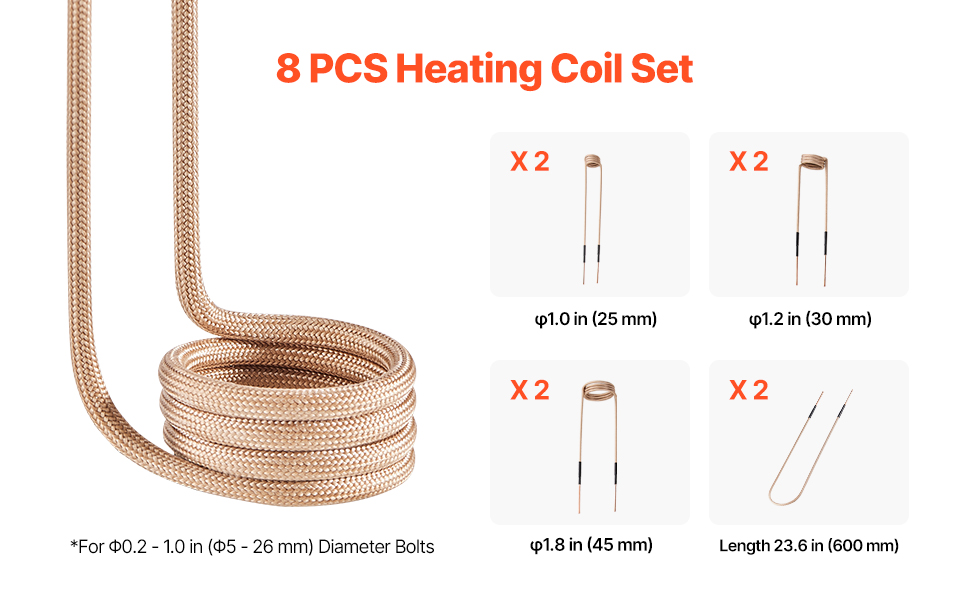 The bolt heater tool meets most complex metal heating needs. The U-shaped coils easily handle irregular workpieces. The purple copper conductive wire is more efficient than regular copper wire, and the glass fiber insulation layer offers superior resistance to breakage.