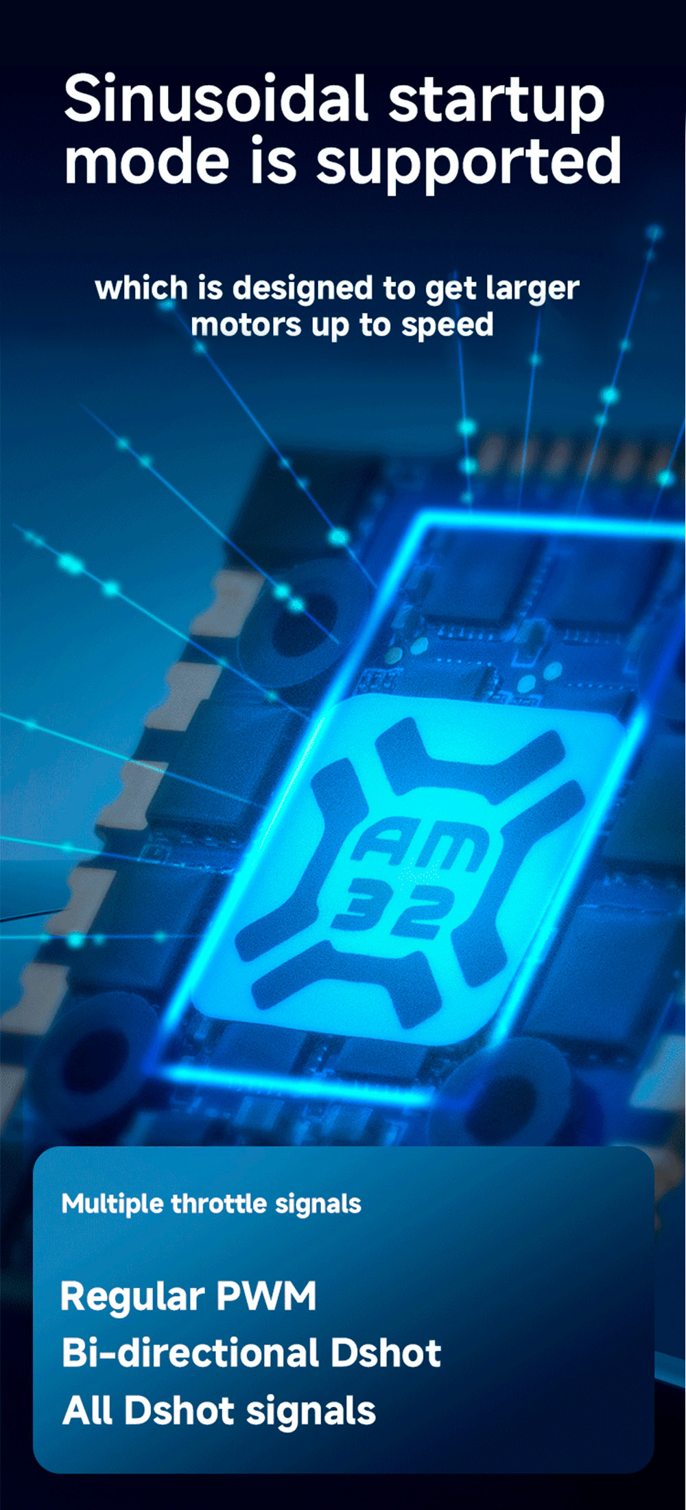 2. AM32 Firmware,makes the throttlelinearity smoother andthe response faster.