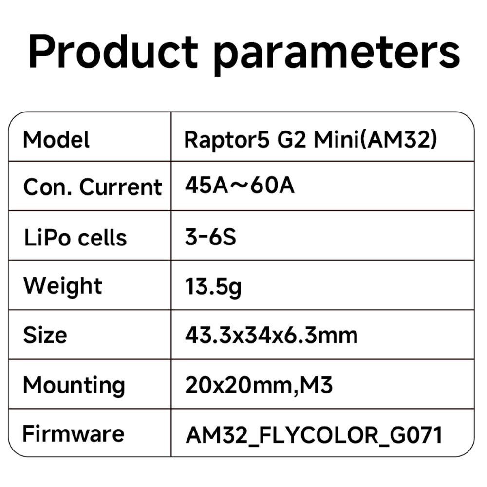 Flycolor RC 60A ESC Raptor5 G2 Mini AM32 60A ESC 3-6S Lipo 20x20mm M3 Supports All Dshot Digital Signals For RC FPV Drones