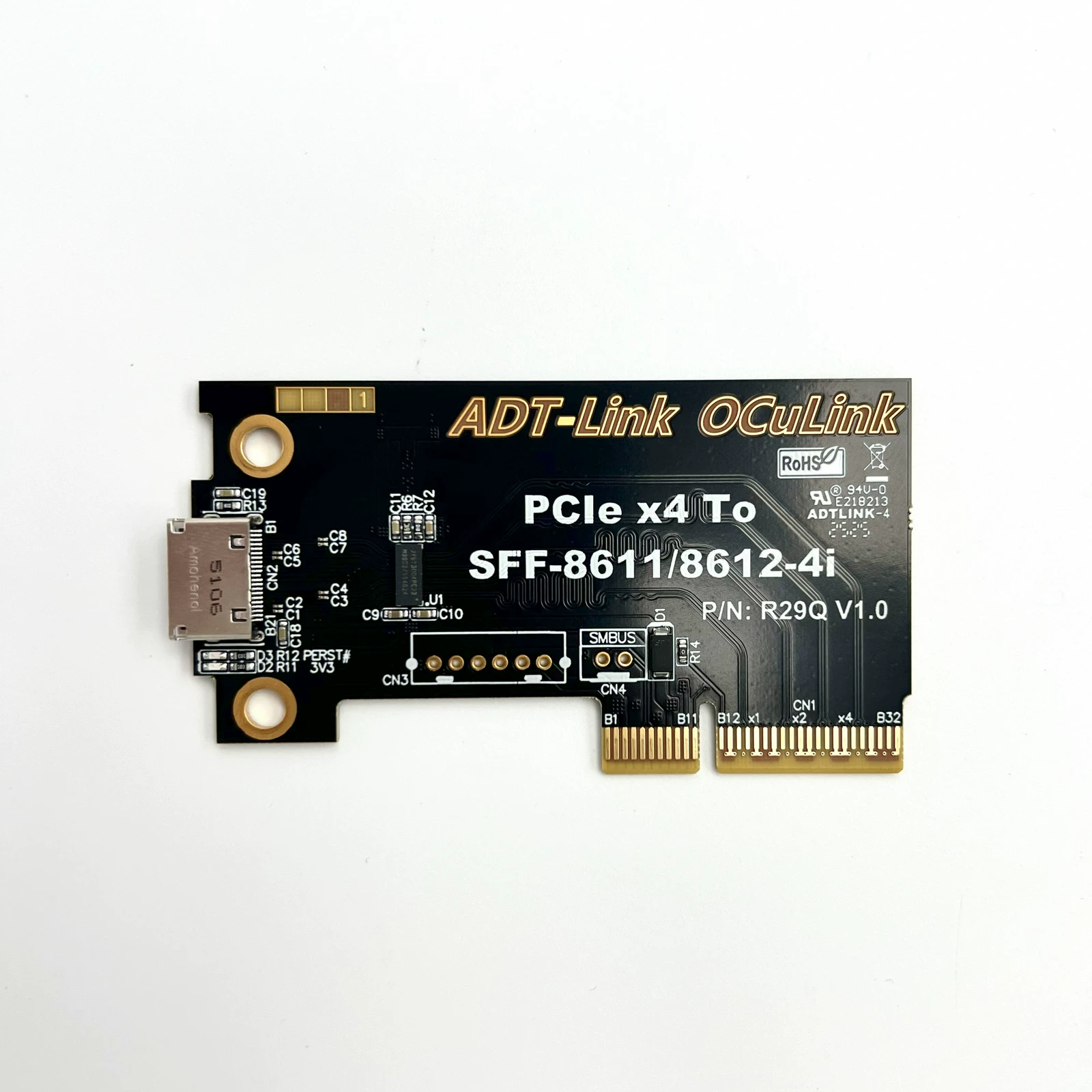 R29Q PCIe 5.0 x4 to OCuLink SFF-8612 Female Adapter Card with Chip PCIe 5.0 x4