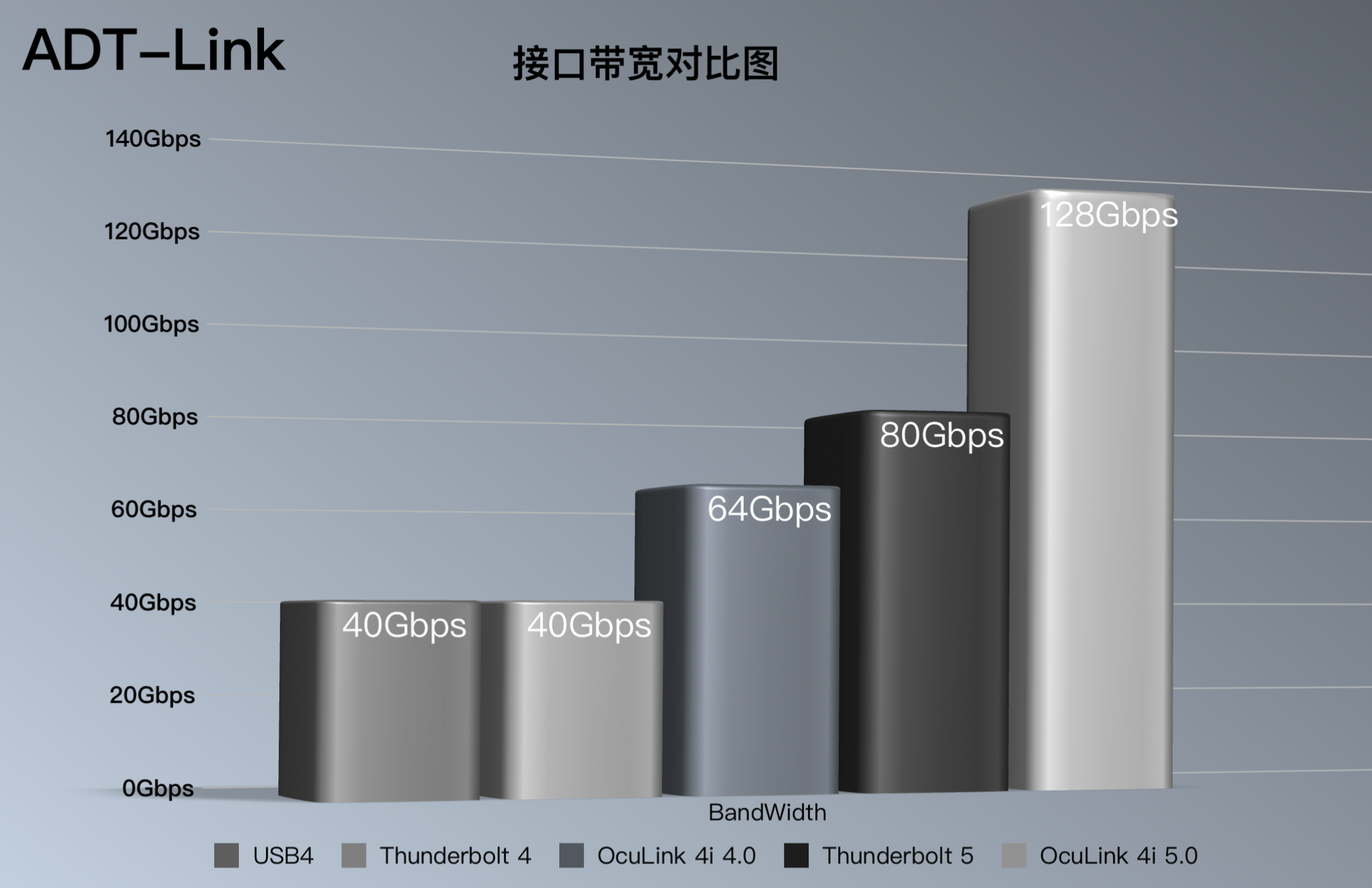 Product Purpose: For external graphics cards or other PCIe devices. Compared to traditional Thunderbolt adapter solutions, OCuLink achieves an effective bandwidth of 128Gbps under PCIe 5.0 x4 conditions, far exceeding Thunderbolt solutions.