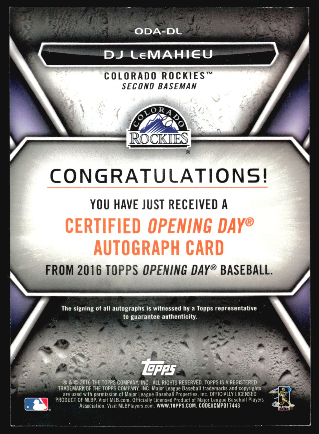 | 2016 Topps Opening Day DJ LEMAHIEU Auto #ODA-DL | ||||||||||||||||||