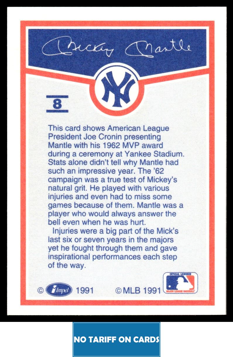 | 1991 Line Drive Mickey Mantle Mickey Mantle New York Yankees #8 | ||||||||||||||||