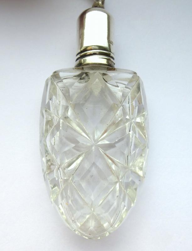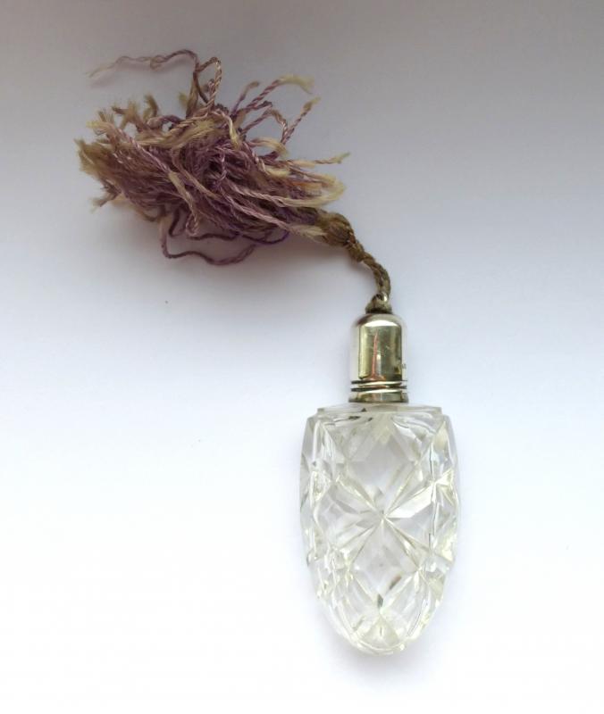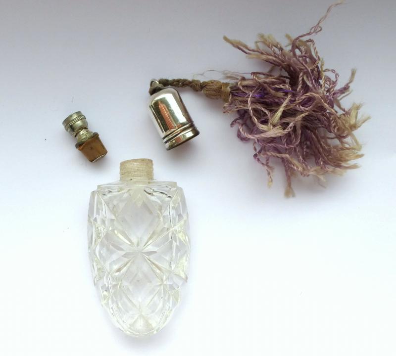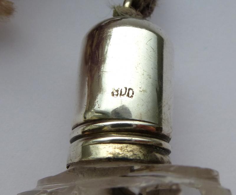 Parfumflakon bzw. Zerstäuber um 1900. 800er Silber, gestempelt (siehe Fotos), Kristallglas. Maße: ca. 7 x 3,5 x 1,5 cm. Gesamtlänge mit Quaste: ca. 15,5 cm. Gebrauchter Zustand, altersbedingte Gebrauchsspuren, kleine Dellen im Silber (siehe Fotos) ENGLISH DESCRIPTION: A perfume flask about 1900, silver, crystal glass. Measure without tassel: approx. 7 x 3,5 x 1,5 cm. Total length: approx. 15,5 cm. Used condition, age-related signes of use, some small dents in silver (see photos) DIE FOTOS SIND DER BESTANDTEIL DER BESCHREIBUNG