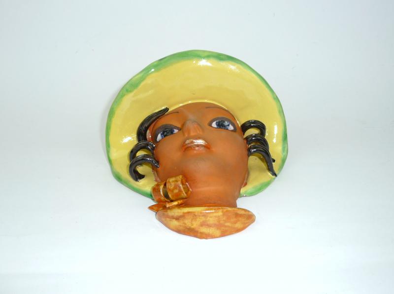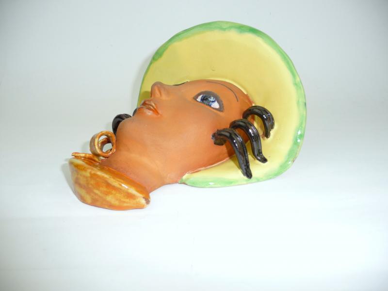 Keramik Wandmaske, 1930er-1940er Jahre. Goldscheider / Adolf Prischl? Maße: ca. 17 x 16 x 10 cm. Guter gebrauchter Zustand, altersbedingte Gebrauchsspuren (siehe Fotos)
