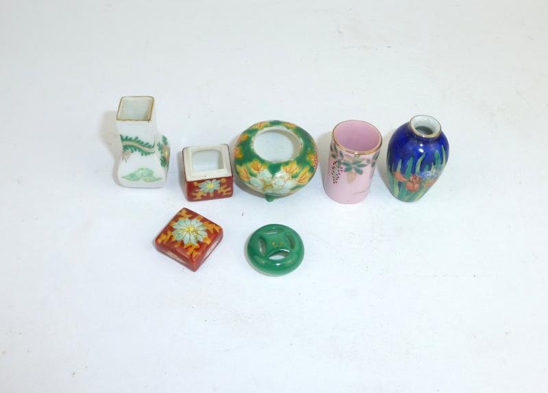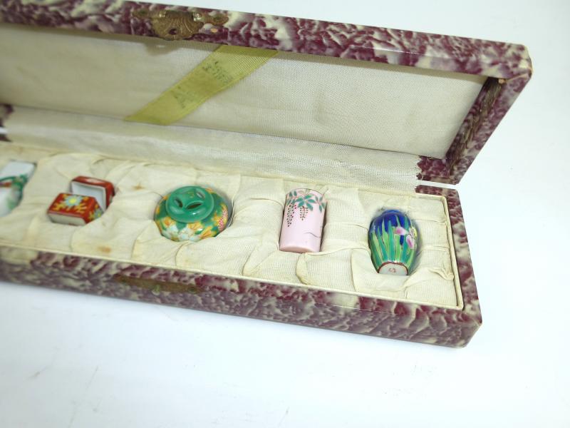 Maße Etui: ca. 21 x 6,5 x 3 cm. Die Höhe der Vasen: von ca. 1,6 bis ca. 3 cm. Guter gebrauchter Zustand, altersbedingte Gebrauchsspuren (siehe Fotos)