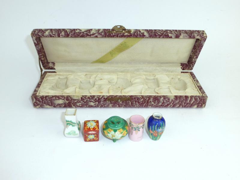 Aus Privatsammlung im Kundenauftrag wird angeboten: Unikatives Set mit Miniaturvasen im Originaletui, China, um 1900-1920.