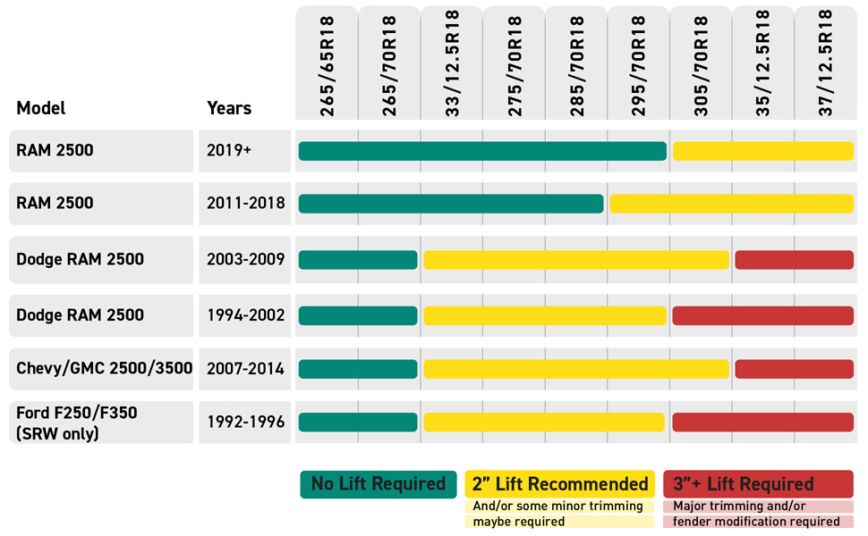 TIRE CHOICE IS IMPORTANTRefer to the diagram below of the most common tire size choices. |