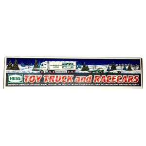 Bring home a piece of holiday tradition with the 2003 Hess Toy Truck and Race Cars – a must-have for Hess collectors and toy enthusiasts alike! This beautifully crafted set includes a large transport truck and two sleek, racing-style cars, all packed with impressive detail and functionality that Hess is known for.