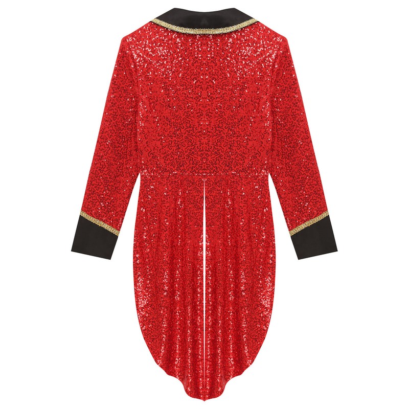 Designed with notch lapel, long sleeve, open front, shiny sequin and gold trims, shiny sequin layer and smooth lining.
