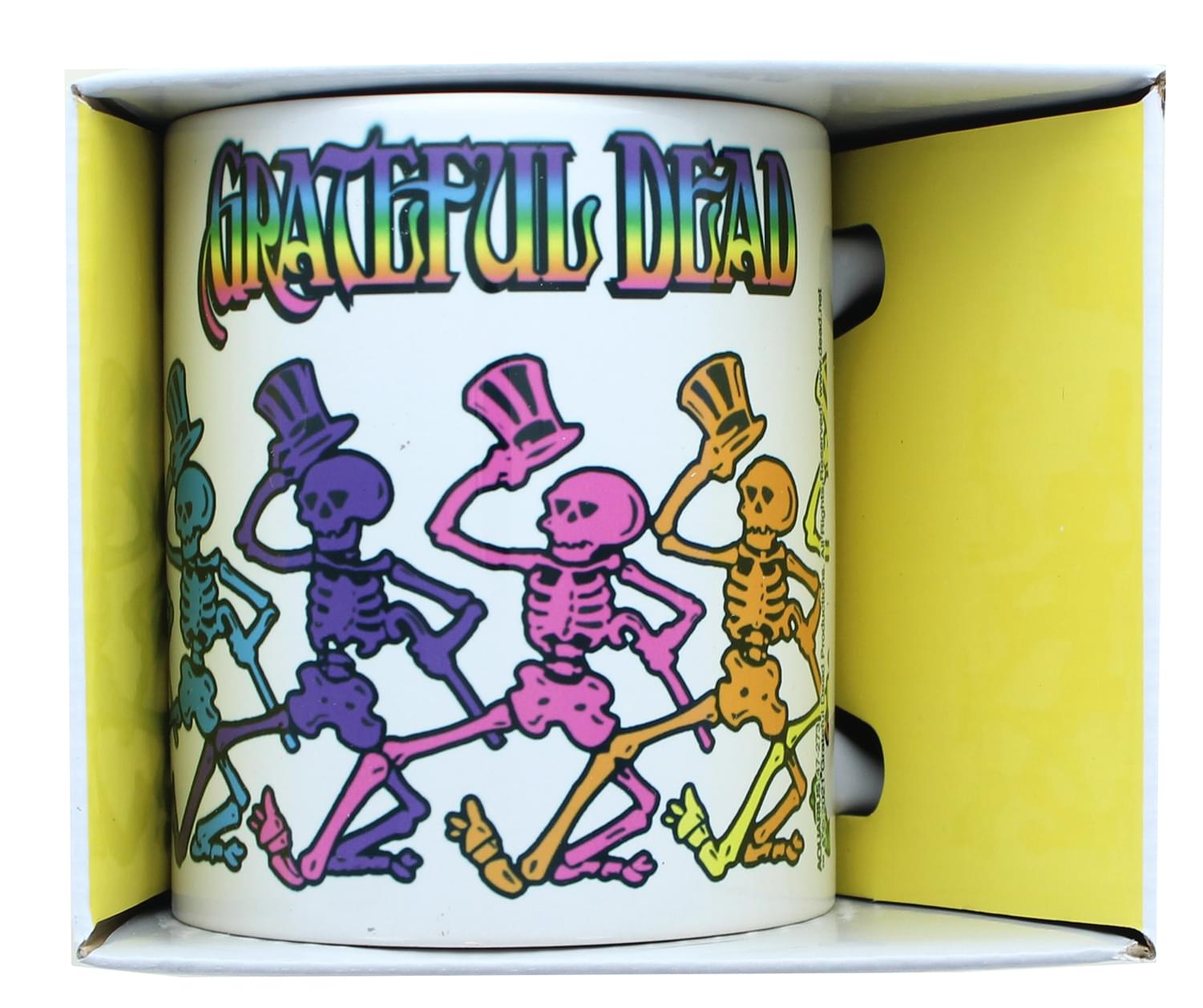 • BOTTOMS UP: Celebrate the rock band The Grateful Dead with this fun mug featuring colorful Dancing Skeletons!