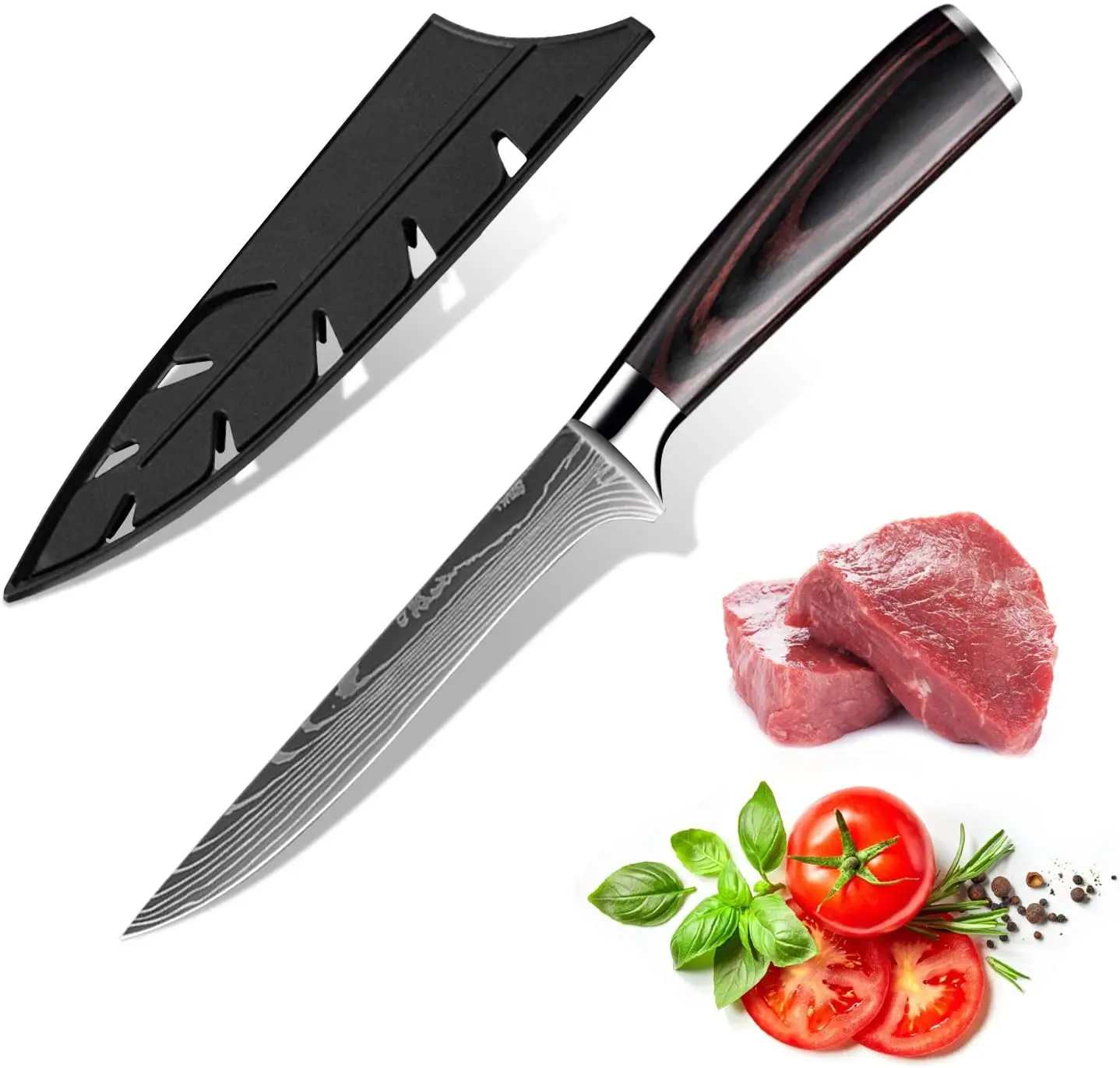 Super versatile: our meat cleaver lets you show off your cooking skills. It is not only suitable for cutting, fruit, vegetable, fish fillets or meat, but can easily handle your daily kitchen tasks including chopping, slicing, chopping and cutting food. Super Sharp: Our sharp knife kit has a blade thick enough to be sharp enough to perfectly match your cooking task. The blade is sharp on each side, allowing you to make precise cuts effortlessly, with durable, rust-free performance. Super Comfortable Handle Design: The knife handle is made of high quality material, which is ergonomic. The professional blade set is integrated with the ergonomic handle to provide a soft and comfortable holding force, which makes the handle and blade perfectly matched. Durable: Our chef's kitchen knives are made from food grade materials. Moreover, they also have corrosion resistance and anti-corrosion ingredients, which have anti-rust and anti-corrosion effects. More sustainable. Super ideal gift: exquisite pattern design, elegant and comfortable knife handle. Suitable for cooking novices or professionals, this is definitely your ideal gift for cooking enthusiasts.