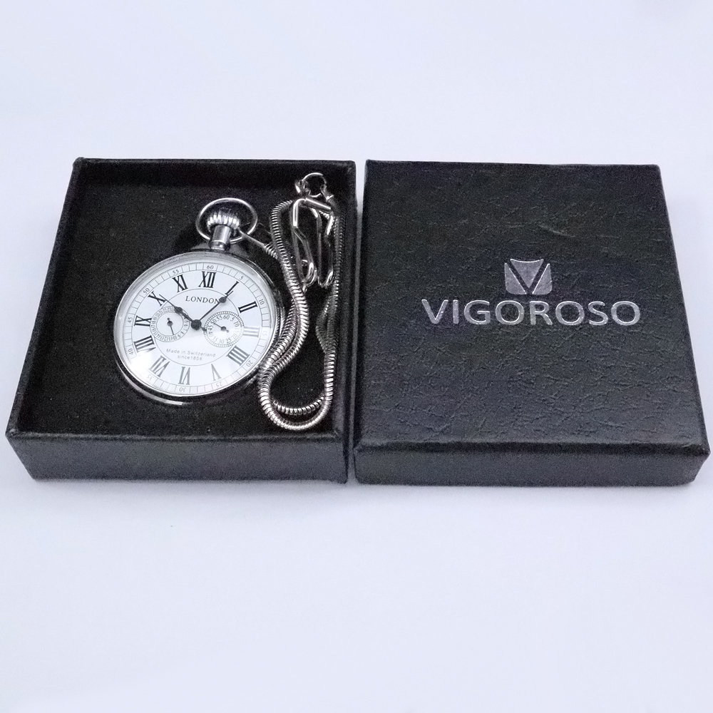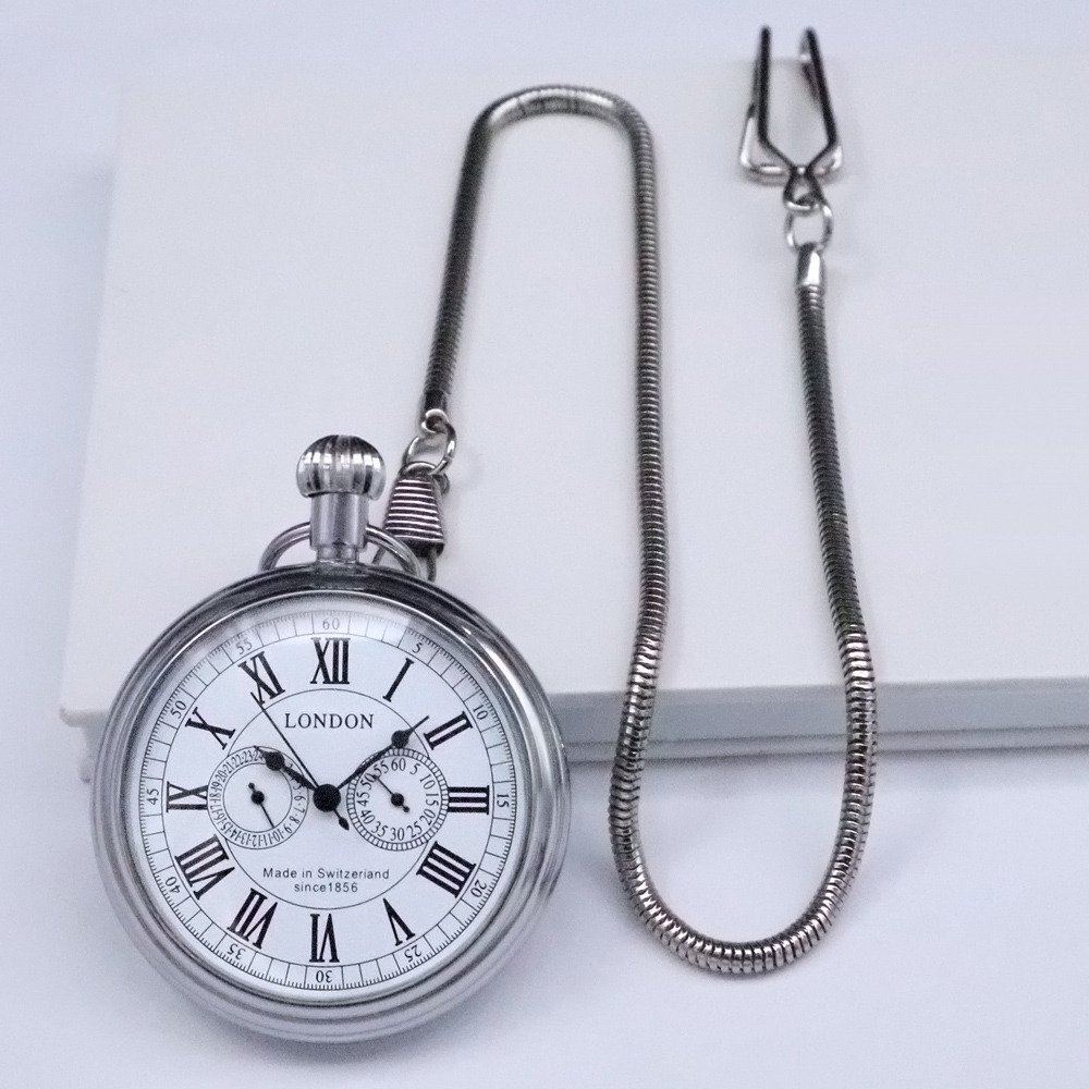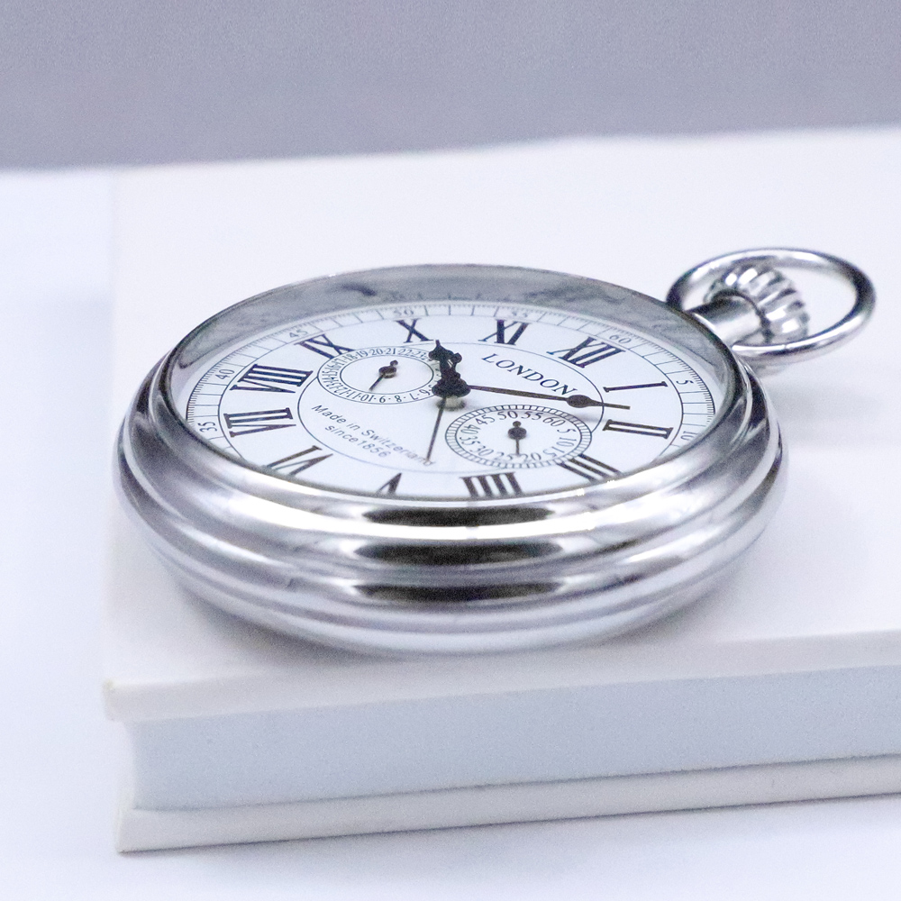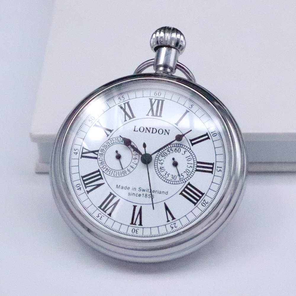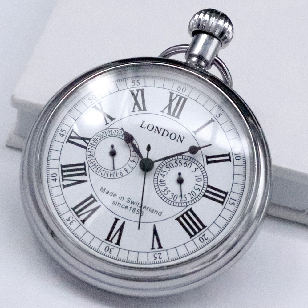 Features: ,Sub-dials(24 Hours/60 Seconds), Analog,Roman numerals,Open face.