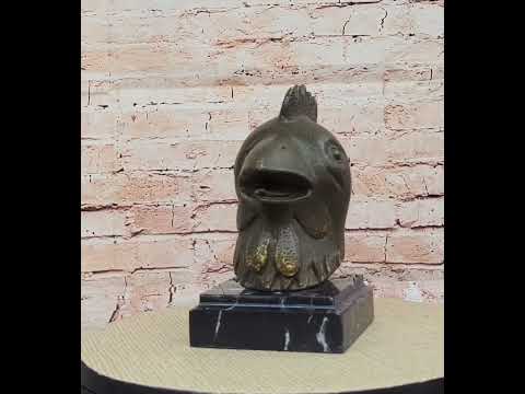 Signed Fengshui Genuine Bronze Rooster head Statue, Animal Auspicious lucky Figurine