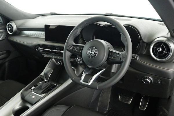 ..Adaptive cruise control with Stop and Go, Alfa connect box, Alfa connect services, Alfa dna with esc off (3 modes + esc off), Apple car play/Android Auto, Drowsy driver detection, e-Call (emergency call), Forward collision warning, Full tft instrument cluster - 12.3'', Intelligent speed assist, Lane support system, PAS, Passive / keyless entry (front doors), Quick guide in english, Speed limiting device, Traffic sign recognition (w/navigation), Warranty handbook uk, Wireless charging pad, Mode 2 charging cable, Mode 3 charging cable, 10.25'' radio touchscreen, usb, bluetooth audio streaming, voice controls with navigation, DAB digital audio broadcast, PHEV infotainment specific graphics and features, 4 Interior puddle lights, Auto headlamps with dusk sensor, Auto high beam, Auto wipers with rain sensor, Auto-dimming rear internal mirror, Black painted mirror caps, Body colour door handles, Body colour rear roof spoiler, Chrome finishing tonale badge, Electric exterior mirrors (heated), Electrical-folding exterior mirrors, Front and rear power windows with auto up/down and antipinch, Full LED rear lamps, Grained body kit, LED blade stop light, LED cornering projector light, LED license plate light, Matrix full led headlamps with adaptive system and fog light function, Phev exterior badging, Privacy glass, Rear side wing doors, Rear wiper, Roof, hood and exterior mirrors protection, Shark fin antenna, U shaped LED blades DRL signature and dynamic turn indicator, V front bezel black, Welcome/leaving lighting, 12V socket in boot, 60/40 Rear seats with ski pass, Alfa logo electrowelded on headrest, Black ceiling and pillars, Bottle storage 1l on door panel, Centre armrest with dark grey stitching, Centre tunnel with rotary shifter and glossy black painted central bezel, Door armrest with biscotto stitching, Dual zone air conditioning with aqs (with rear airvents), Front armrest (integrated in the central tunnel), Front headrests, Front usb plug type a + c (charge + data), Front/rear floor mats, Metallic pedals, Mono colour ambient light (included in domelamp), Overhead console with domelamp led and switches, PTC heater, Rear central armrest and 3 headrests, Rear usb plug type a + c (charge), Scoba shark black grain PVC centre armrest, Scoba shark black grain PVC upper door panel and armrest, Seat belt height adjustment, Single front passenger seat, Sport leather steering wheel with start button, Sunvisor mirror with light (driver and passenger), 6 airbags,