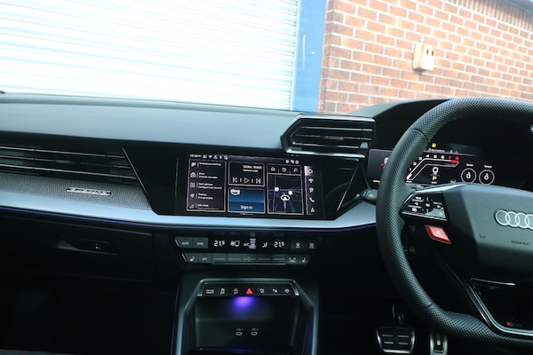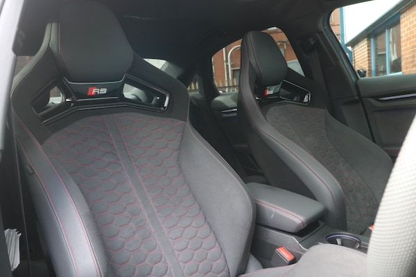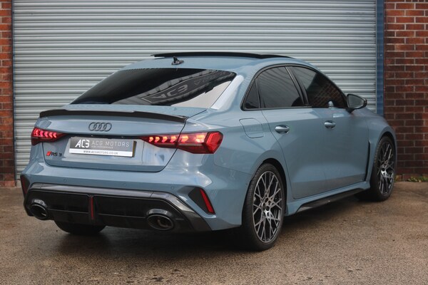 2025 (25) Audi RS3 2.5 TFSI Carbon Vorsprung S Tronic quattro Euro 6 (s/s) 4dr, 12000, FULLY LOADED, 1 OWNER FROM NEW, MANUFACTURERS WARRANTY UNTIL 2028, FINISHED IN KEMORA GREY, RARE RS SUPERSPORT BUCKET SEATS WITH RED STITCHING, SONOS SOUND SYSTEM, REVERSE CAMERA, HEATED SEATS, HEAD UP DISPLAY, HEATED SEATS, RS DESIGN PACK PLUS, CARBON EXTERIOR PACK, ,4-Way Lumbar Support for Front Seats,Adaptive Suspension with Audi Drive Select,Airbags - Driver and Front Passenger with Passenger Airbag Deactivation,Ambient Lighting Package Pro,Anti Theft Locking Wheel Bolts,Anti-Theft Alarm,Audi App Store and Smartphone Interface,Audi Beam,Audi Connect Navigation and Infotainment Services Plus - 3 Year Subscription,Audi Phone Box with Wireless Charging,Audi Pre-Sense Front,Audi Virtual Cockpit with RS Specific Design and 12.3in Display,Auto Dimming and Frameless Rear View Mirror,Automatic Start-Stop System with Recuperation,Black Styling Pack Plus,Camera Based Traffic Sign Recognition,Carbon Door Mirrors, Carbon Tailgate Spoiler,Cloth Headlining in Black,Cssistant,DAB Digital Radio,Distraction and Fatigue Warning,Door Mirrors - Electrically Adjustable - Heated - Folding - Automatically Dimming with Memory Function and Integrated LED Indicators with Kerb View Function for Passenger Side,Door Sill Trims with RS3 Logo,ESC inc ABS - ASR and EDL,Electrically Adjustable Front Seats with Memory Function for Drivers Side,Electronically Operated Child Locks,Emergency Call - E-Call,Engine Compartment Cover with Carbon Trim,First Aid Kit and Warning Triangle and 2 Safety Vests,Front Centre Armrest,Front Side Airbags with Head Airbags and Interaction Airbag,Front Sports Seats,Front and Rear Floor Mats,Heated Front Seats,Hill Hold Assist I-Size and Top Tether Child Seat Mounting for the Outer Rear Seats,Inlays - Carbon Atlas Structure,Interior Accents in Vanadium Look,Lane DepartuColour Display,Manual Boot Compartment Lid,Model Badging - Exterior,Panoramic Sunroof,Parking Assist with Parking System