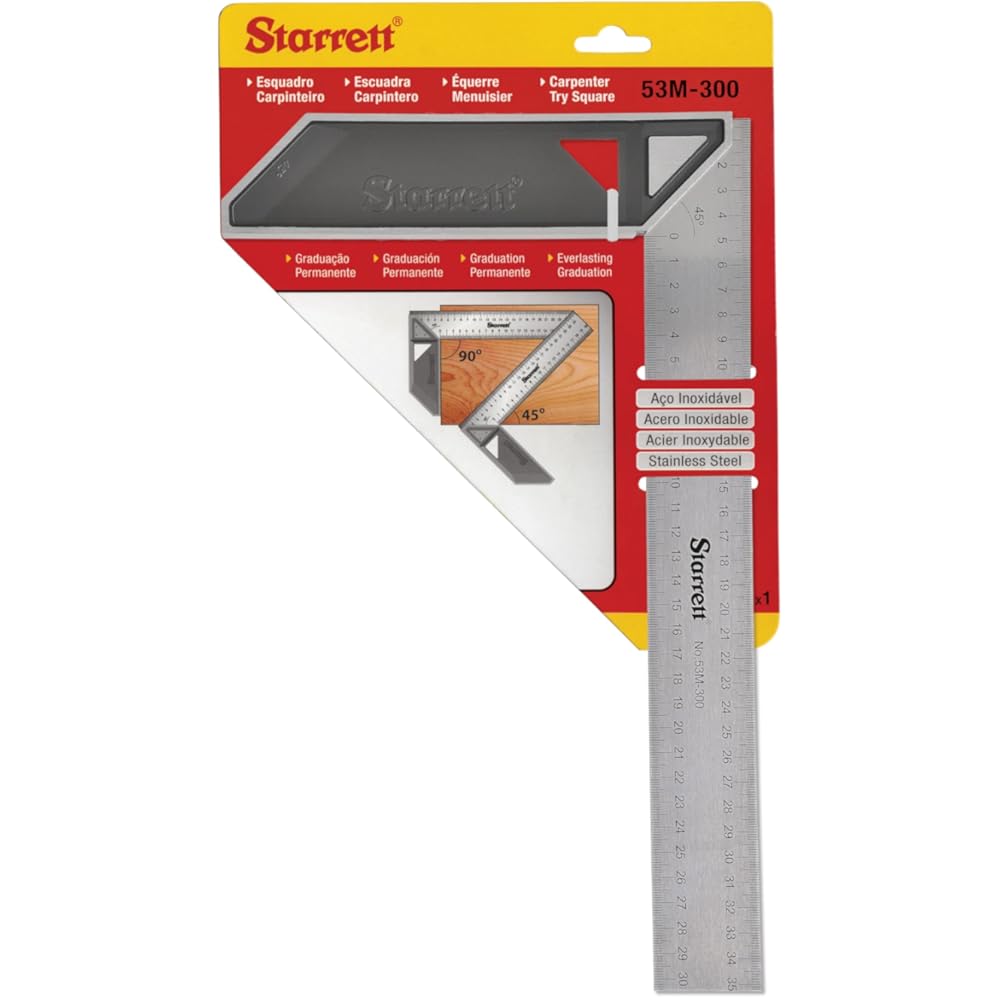 Starrett K53M-300-S Carpenters Try Square for Woodworking 300mm Metric Set Square