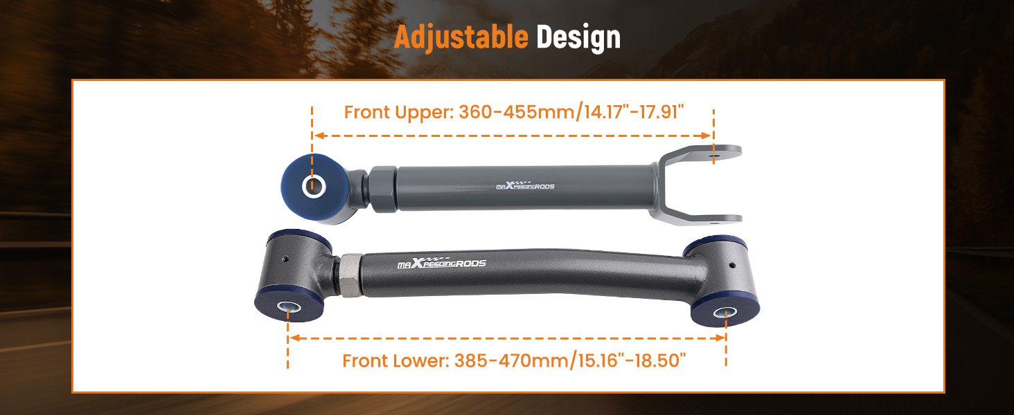 - The adjustability from our control arms allow you to dial in your car's suspension for optimal on and off-road performance