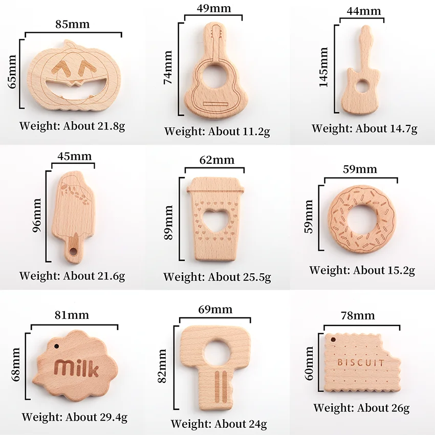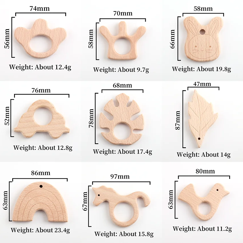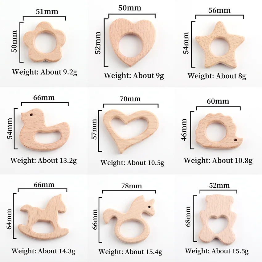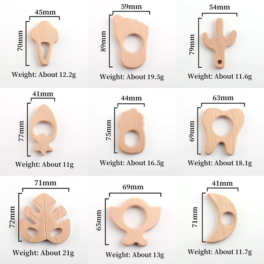 BPA Free Various Shape Beach Wood Baby Pacifier Teether Wooden Newborn Teething Ring Unfinished Baby Accessories Toys