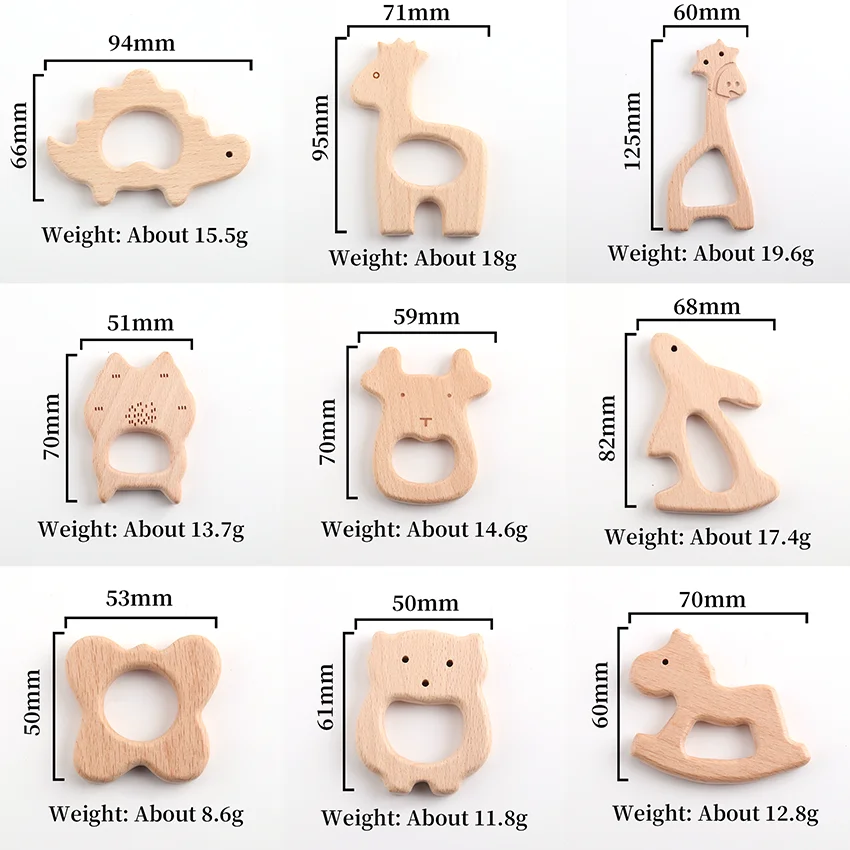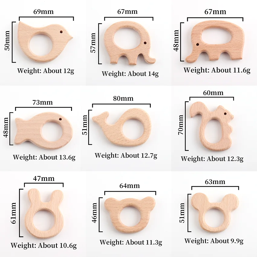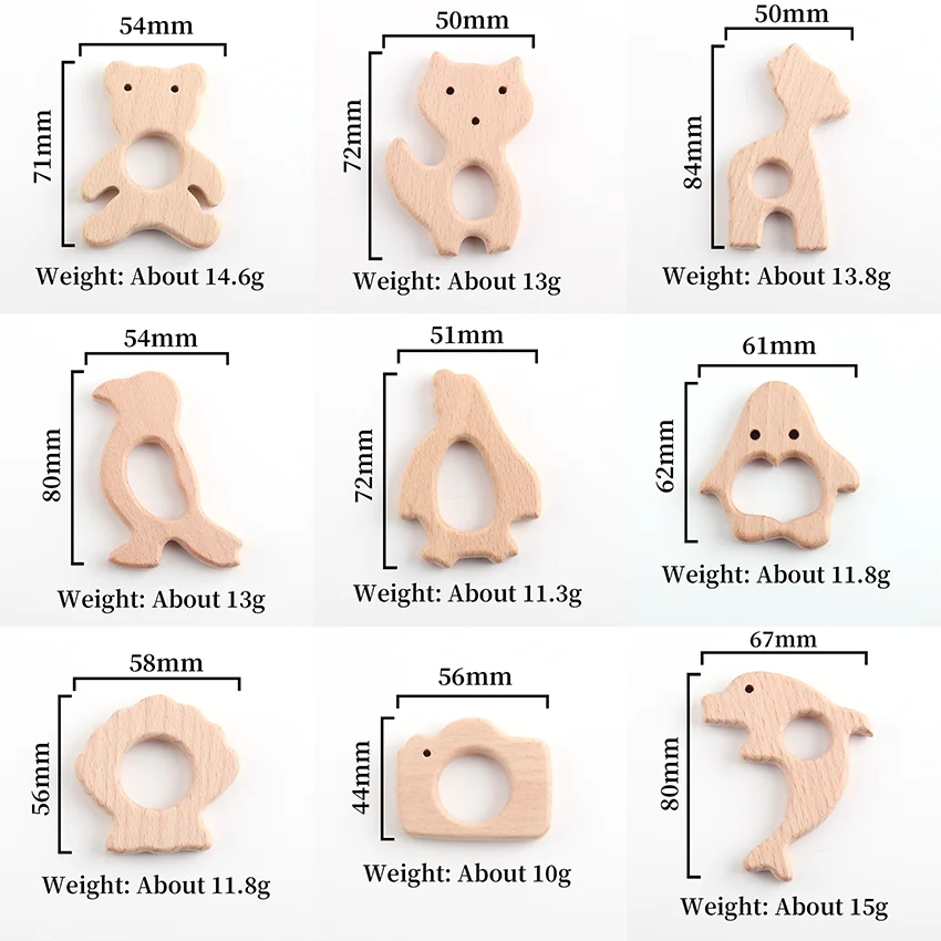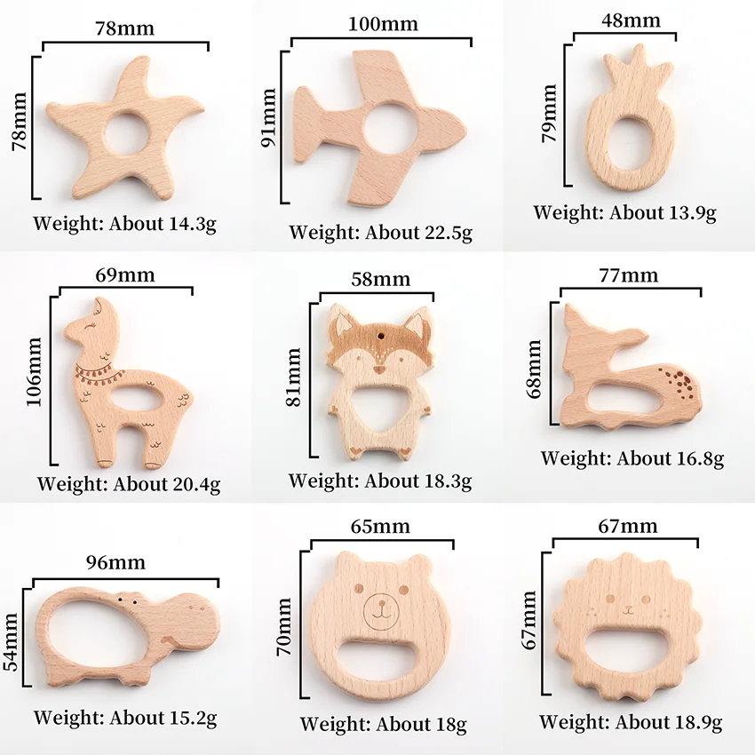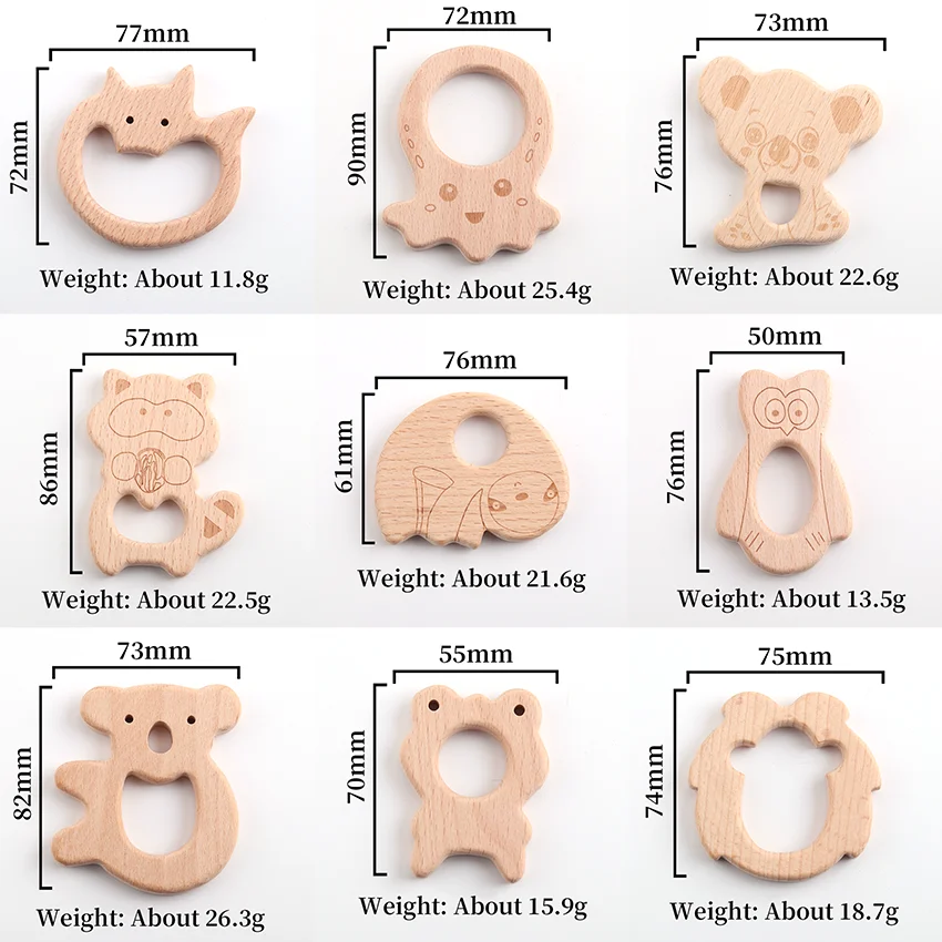 BPA Free Various Shape Beach Wood Baby Pacifier Teether Wooden Newborn Teething Ring Unfinished Baby Accessories Toys