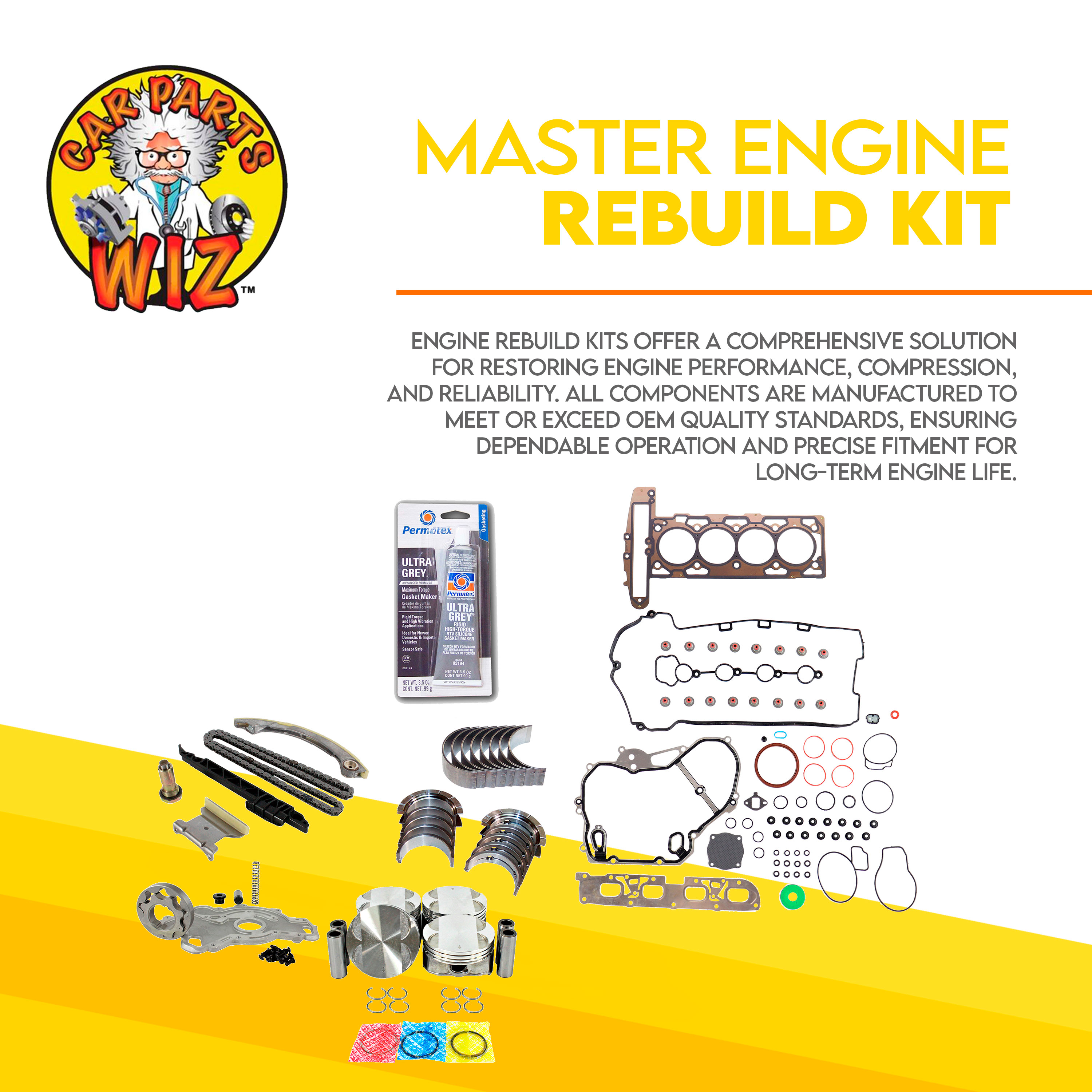 Engine Rebuild Kits offer a comprehensive solution for restoring engine performance, compression, and reliability. All components are manufactured to meet or exceed OEM quality standards, ensuring dependable operation and precise fitment for long-term engine life.