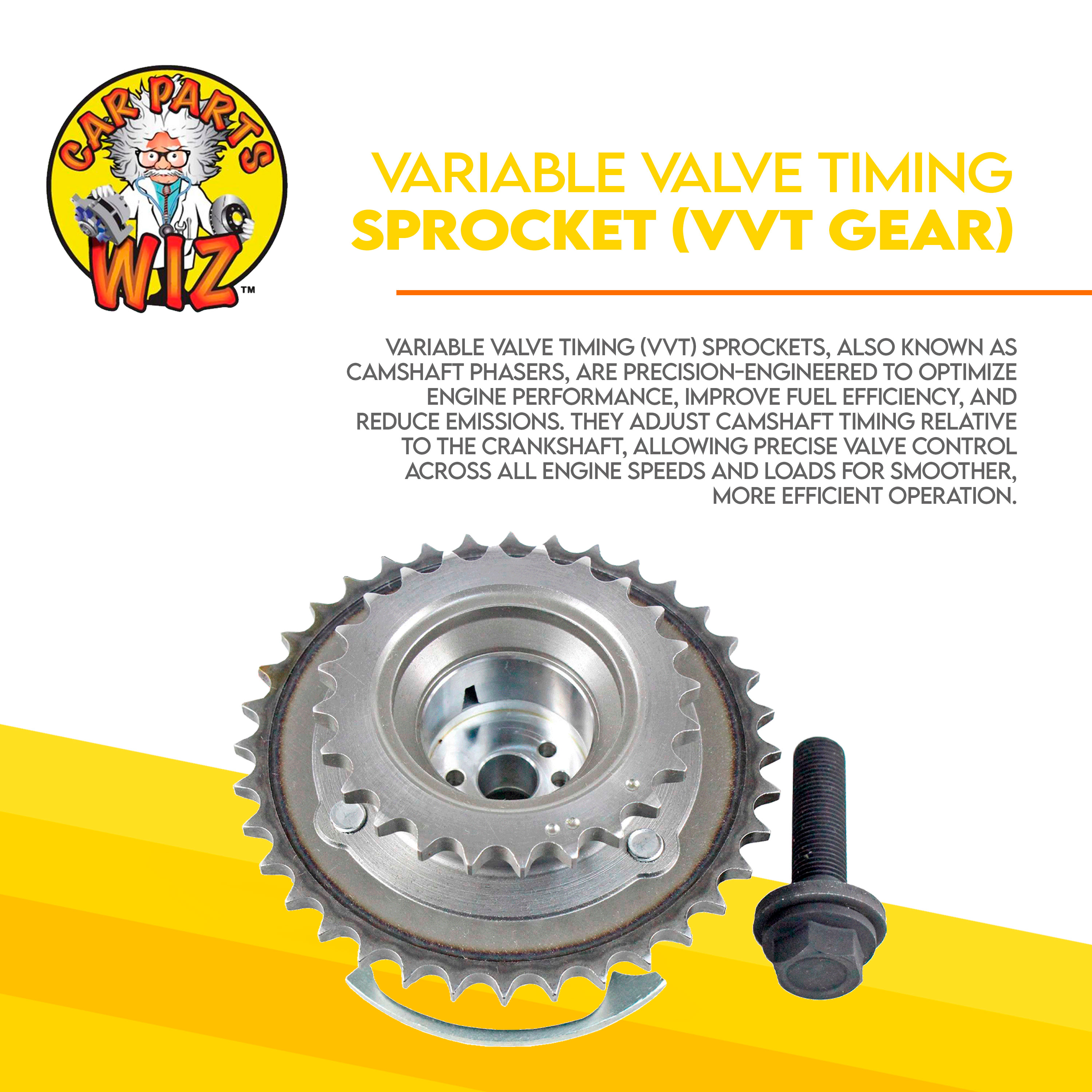 Variable Valve Timing (VVT) Sprockets, also known as camshaft phasers, are precision-engineered to optimize engine performance, improve fuel efficiency, and reduce emissions. They adjust camshaft timing relative to the crankshaft, allowing precise valve control across all engine speeds and loads for smoother, more efficient operation.